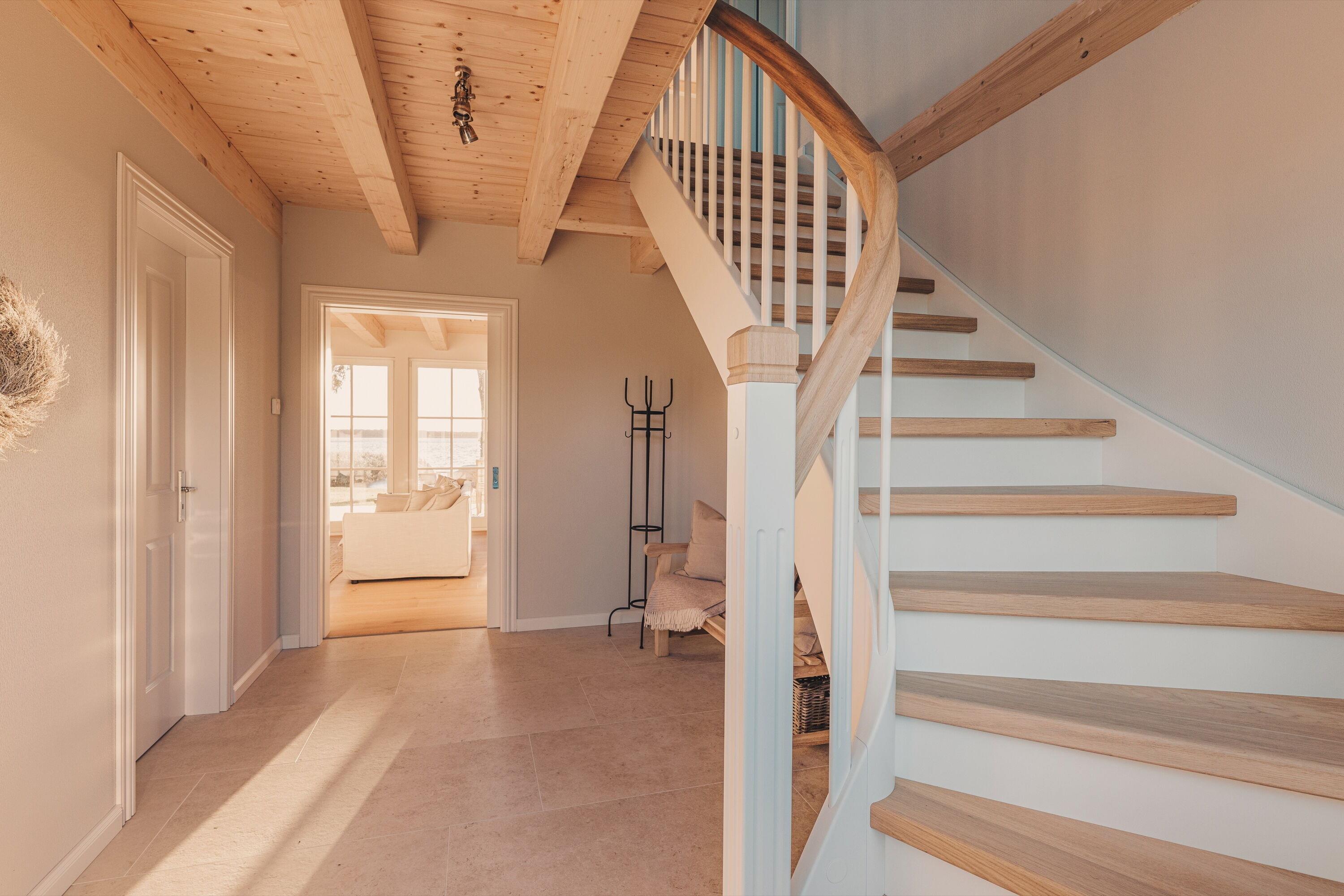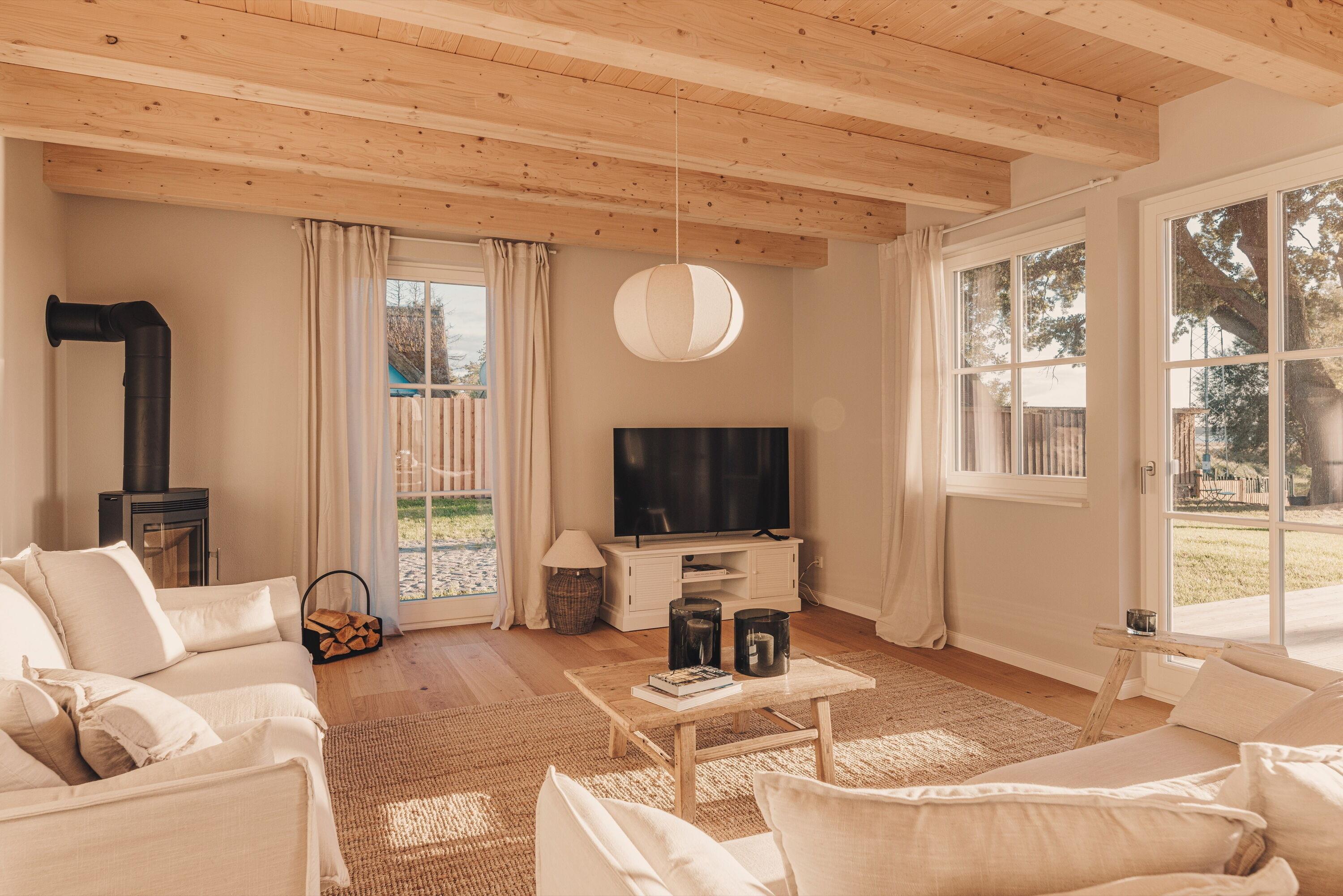 Erleben Sie entspannte Tage voller Komfort und Gemütlichkeit in unserem Premium Ferienhaus direkt am Wasser mit privater Badestelle: Umsorgt mit einem einzigartigen Wohlfühlambiente, verwöhnt mit sanftem Luxus.