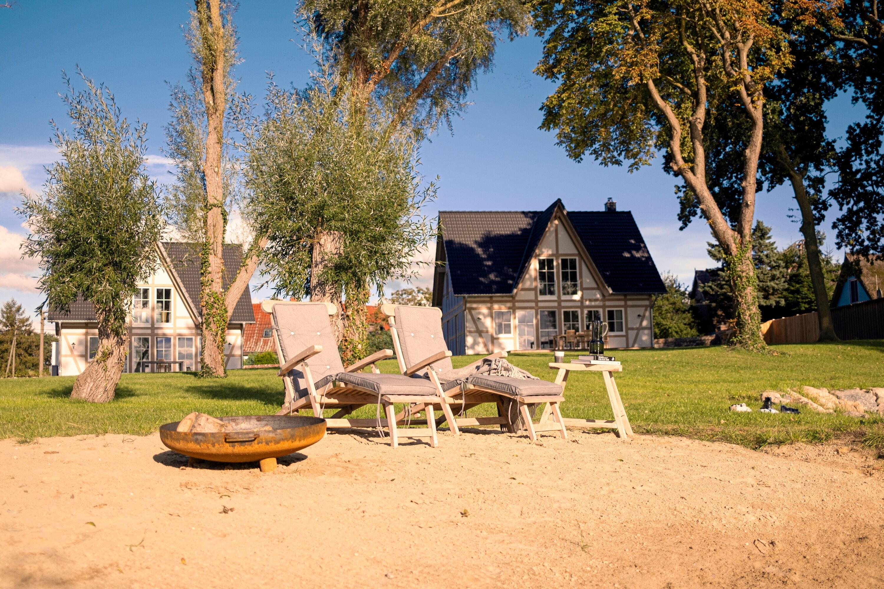 Zum Watermark Usedom gehören zwei exklusive Ferienhäuser direkt am Wasser, das Ferienhaus "Welle" und das Ferienhaus "Woge". Jedes Haus verfügt über eine großzügige Holzterrasse mit Panoramablick auf das Wasser, die weitläufige 3.000 m² große Gartenanlage steht zur gemeinsamen Nutzung zur Verfügung. Sitzmöglichkeiten und Sonnenliegen laden zum Entspannen ein. Ein Grill, eine Feuerschale sowie ein altes Stallgebäude zum sicheren Abstellen von E-Bikes und Fahrrädern stehen unseren Gästen zur gemeinschaftlichen Nutzung zur Verfügung.