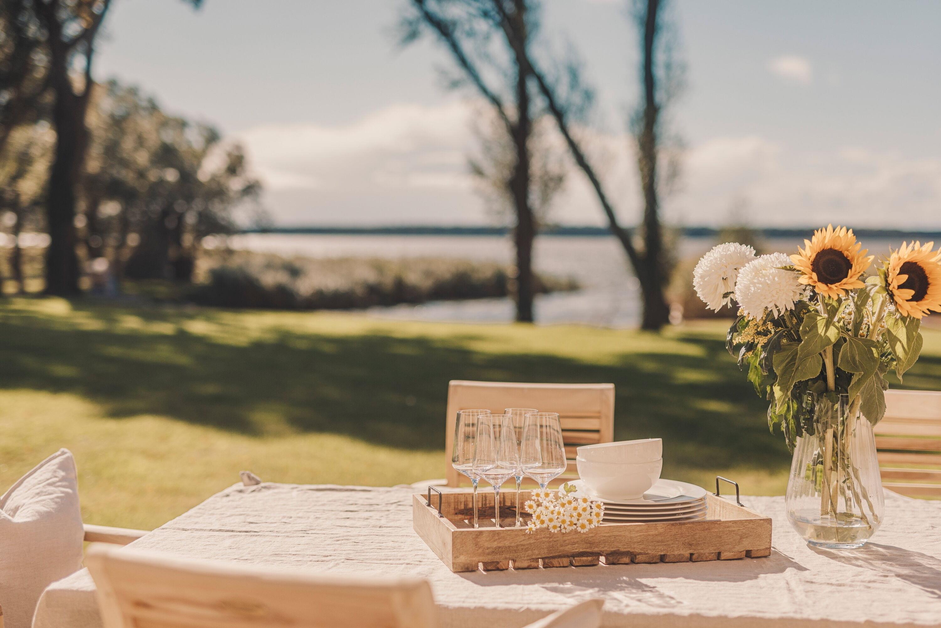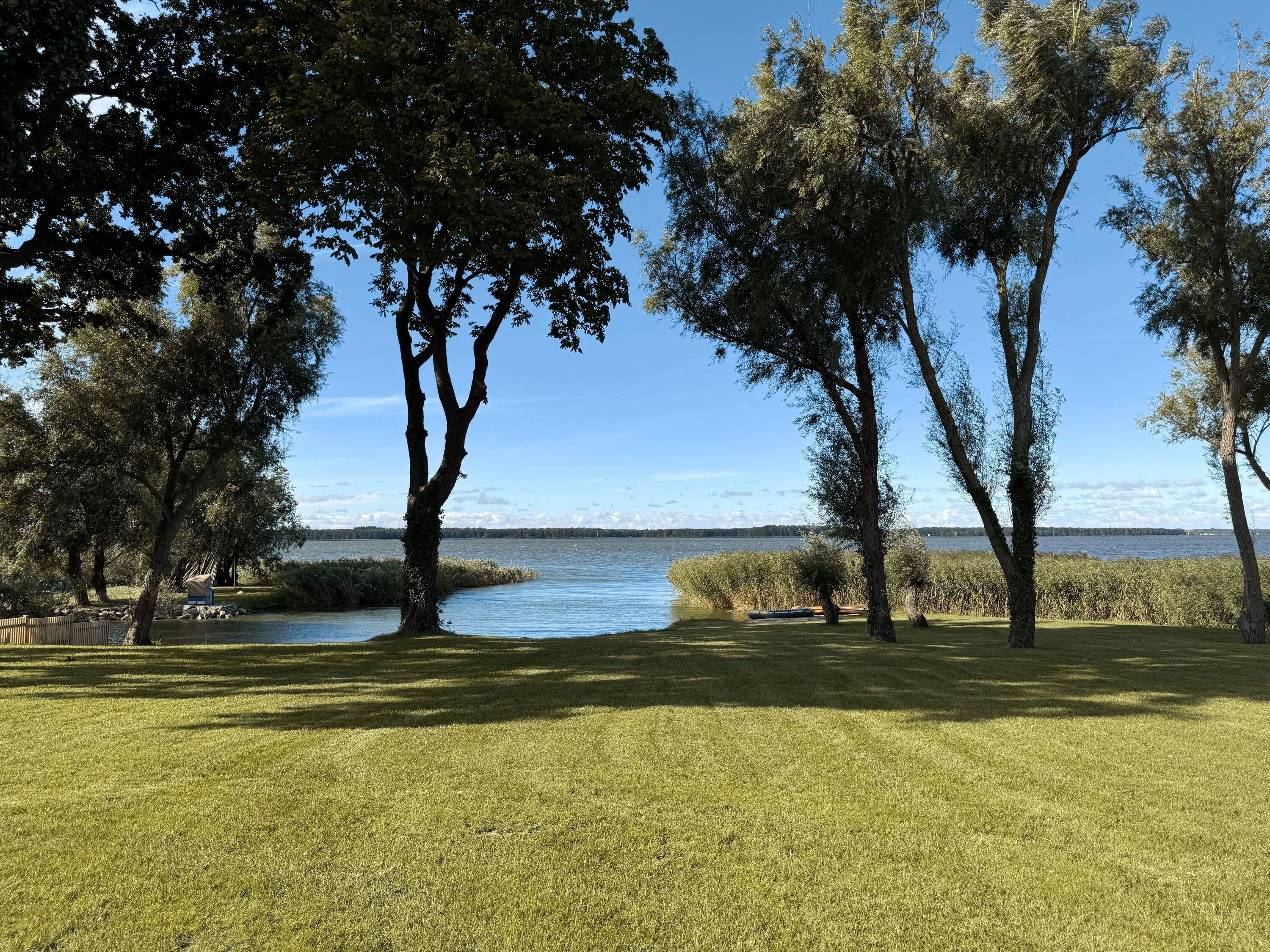 Fernab des Trubels bietet dieses traumhafte Domizil mit direktem Wasserzugang und zwei privaten, feinsandigen Badestellen den perfekten Ort, um die Seele baumeln zu lassen. Im zauberhaften 3.000 m² großen Garten mit ausladender Holzterrasse und Sonnenliegen können Sie den Alltag hinter sich lassen und den Wellen beim Schaukeln zusehen. Für laue Sommernächte steht eine große Feuerschale bereit, um den Sternenhimmel am Wasser bei einem gemütlichen Lagerfeuer zu bewundern. Tagsüber lädt ein Kanu (kostenlos zur gemeinschaftlichen Nutzung der Gäste vom Watermark) zu Inselausflügen auf dem Wasser ein.