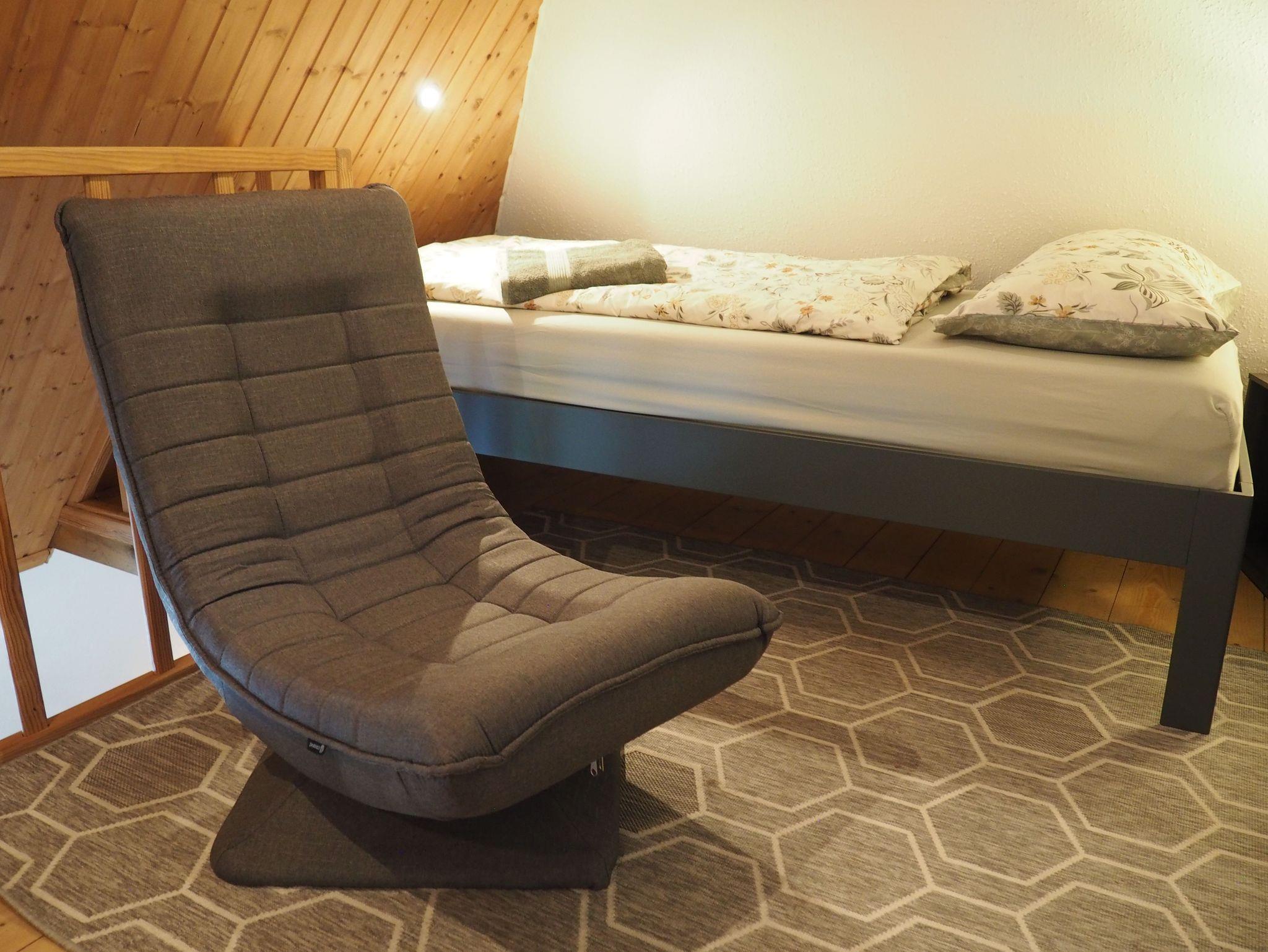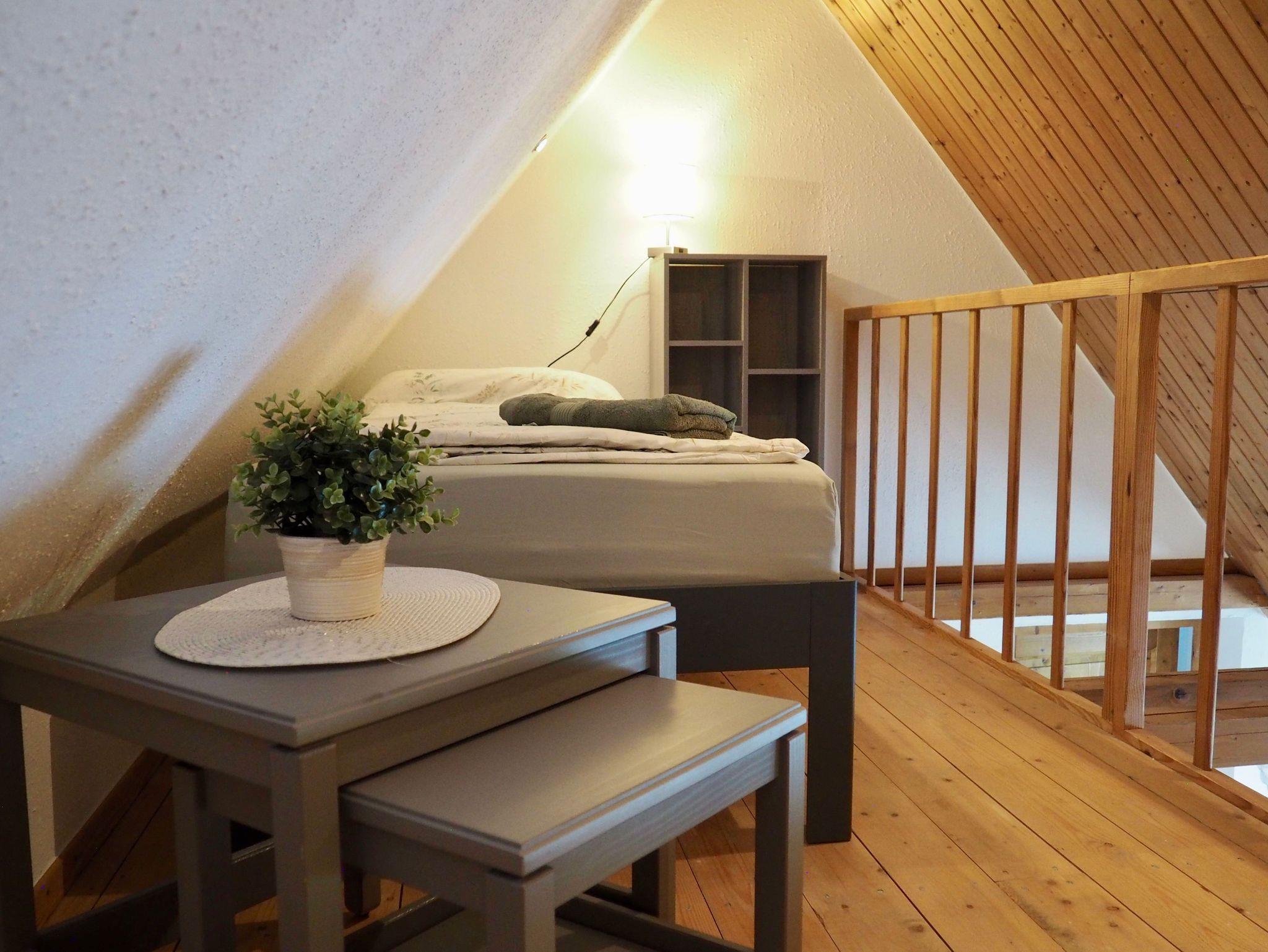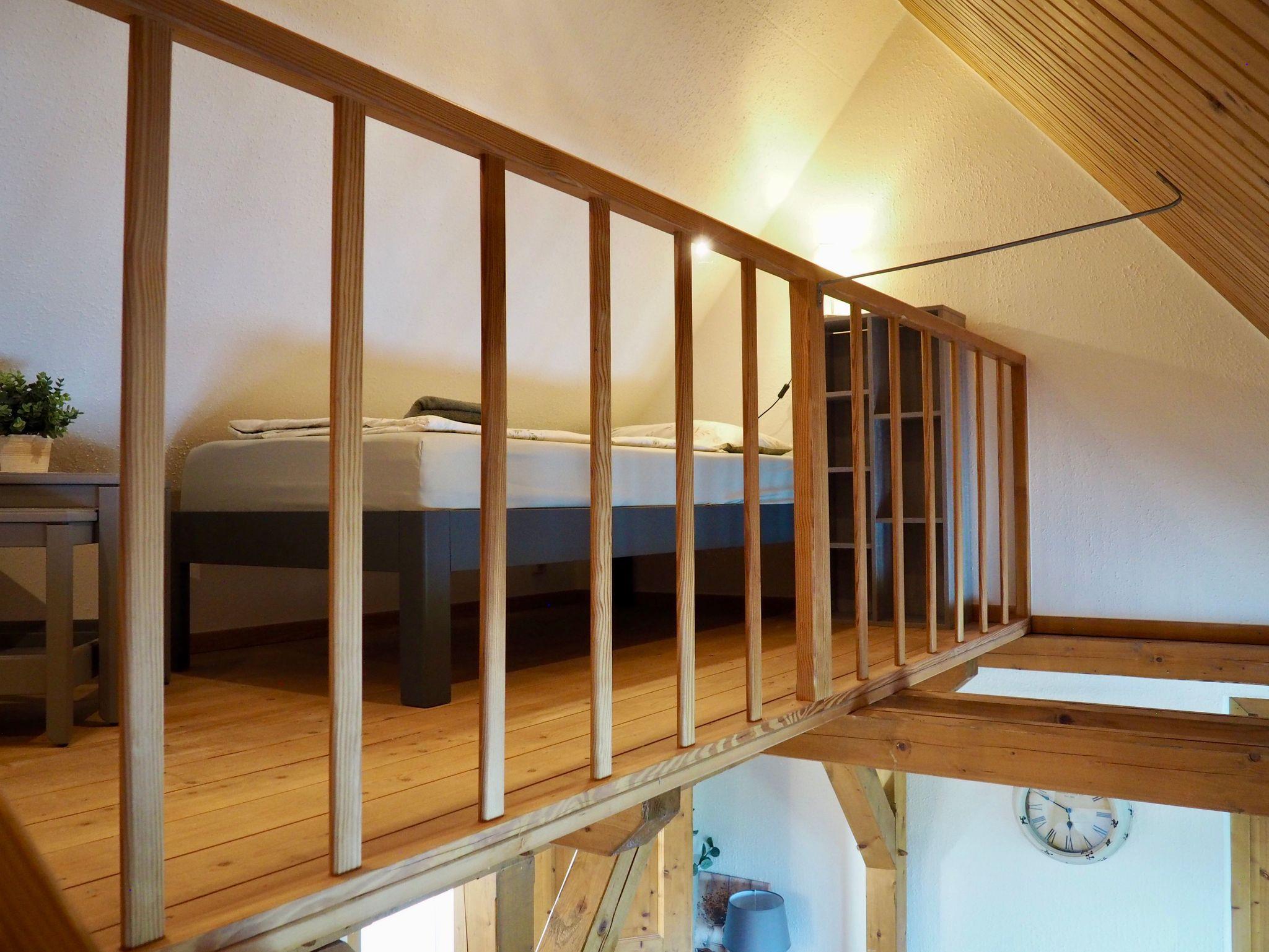 Ein behagliches Schlafzimmer mit komfortablem Doppelbett sorgt für erholsame Nächte. In der offenen Galerie im Dachgeschoss befinden sich zwei weitere Einzelbetten ? ein Lieblingsplatz besonders für Kinder oder junge Gäste.