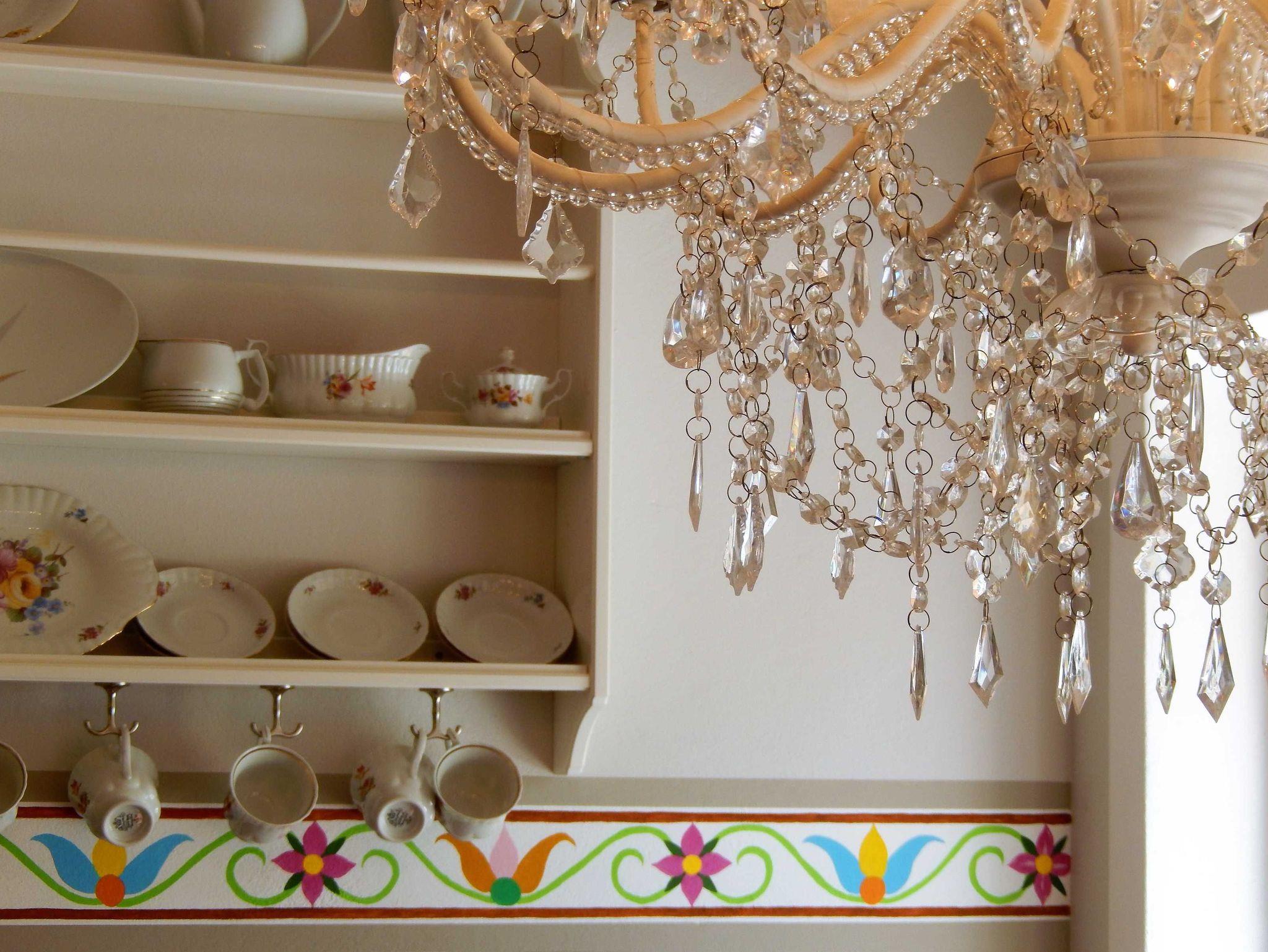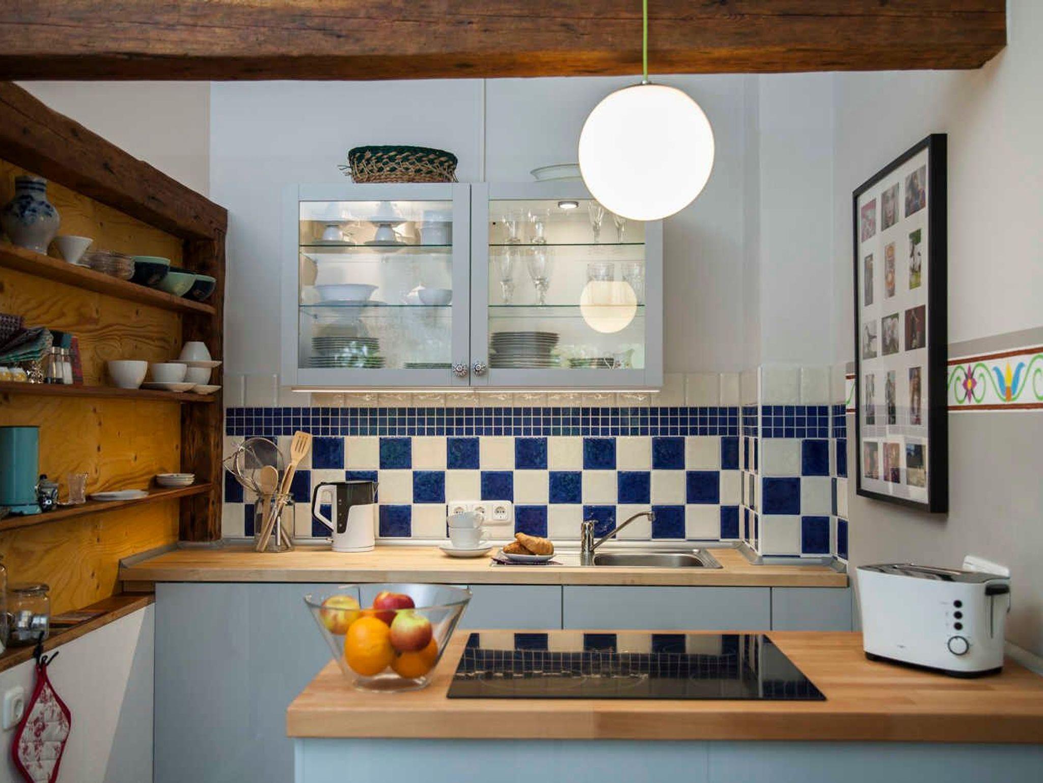 Die Küchenausstattung ist komplett mit Töpfen und Pfannen und allen zum Kochen notwendigen Utensilien wie: Kartoffelstampfer, Dosenöffner, Korkenzieher, Sparschäler, Mixstab, Kochlöffel, Knoblauchpresse, anständige Messer etc. Ein Kaffeevollautomat der Firma Saeco und ein Milchaufschäumer zaubern einen perfekten Cappuccino. Zusätzlich gibt es eine Kaffeemaschine, einen Wasserkocher und Toaster. Das Geschirr und Besteck sind für 12 Personen damit der Geschirrspüler auch gefüttert werden kann. Außerdem gibt es Espressotassen, Milchkaffeetassen, Müslischalen und zum Teil antike Servierschüsseln und Platten.