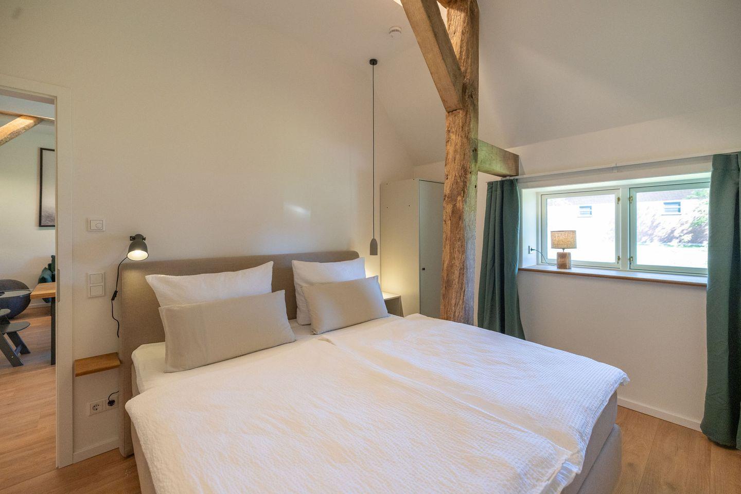 Das 37qm2 große Loft bietet Platz für 2 Personen und Kleinkinder bis 3 Jahre. Die geschmackvolle Ausstattung umfasst eine Küche mit ECO-Geräten, ein behagliches Boxspringbett und eine Regendusche – abgerundet durch einen hochwertigen Bio-Vinylboden.