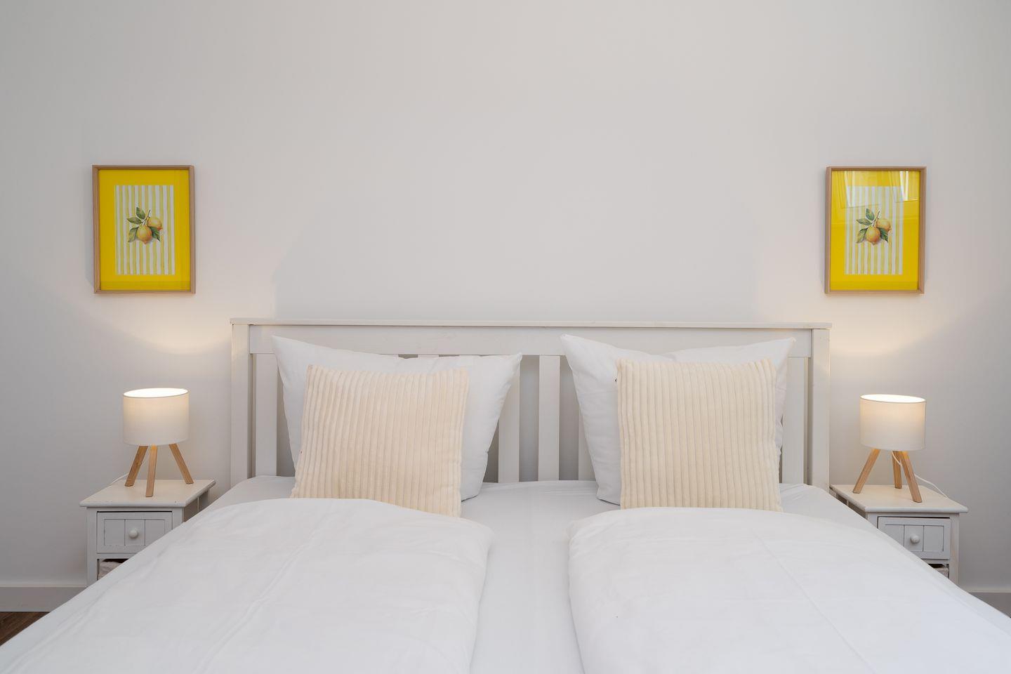 Die vier separaten Schlafzimmer sind mit Vinylboden versehen und bieten ausreichend Stauraum durch Kommoden und Garderoben. Jedes Schlafzimmer verfügt über ein bequemes Doppelbett (jeweils 2x 90 cm x 200 cm). In den beiden modernen Badezimmern finden Sie jeweils eine Dusche, Waschbecken, WC und Kosmetikspiegel. Die Betten sind bei Ihrer Ankunft frisch bezogen, Handtücher in ausreichender Menge vorhanden. Für eine angenehme Wohlfühlatmosphäre sorgt die Fußbodenheizung im gesamten Haus. Für die Pflege Ihrer Kleidung stehen Bügeleisen, Bügelbrett, Waschmaschine zur Eigennutzung sowie ein Wäscheständer bereit.