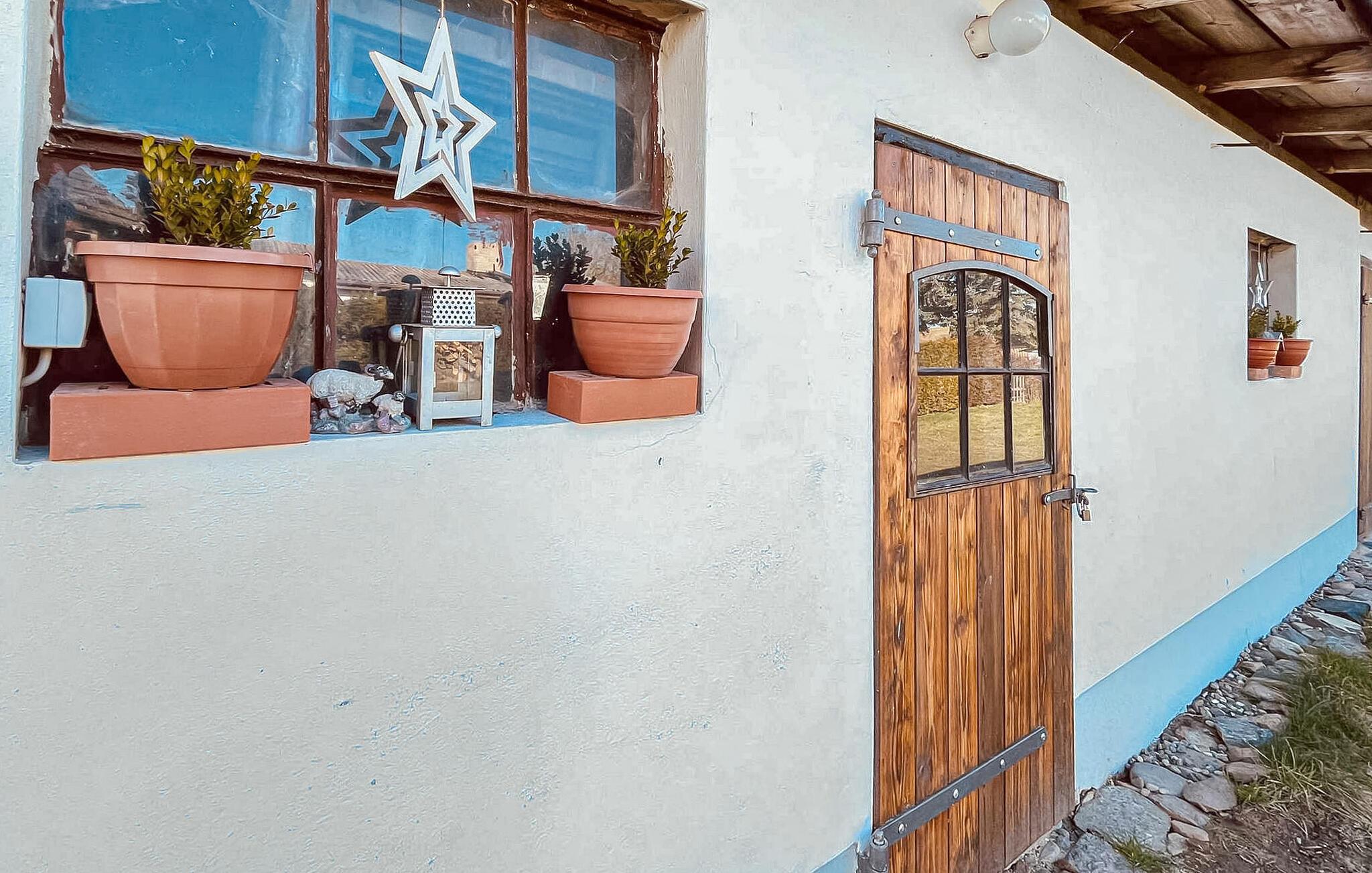 Die ca. 75 qm große Doppelhaushälfte für max. 2 Personen befindet sich auf einem 2000 qm großen Grundstück (zur alleinigen Verfügung). Das ehemalige Bauernhaus aus dem 19. Jahrhundert wurde im Jahre 2021 aufwändig kernsaniert und hochwertig ausgestattet. Vorhanden sind ein Wohnraum (Polstermöbel, Flachbild-TV, Kachelofen), eine große Wohn-Küche (Esstisch, TV, E-Herd mit Backofen, Kühlschrank mit Tiefkühlteil, Spülmaschine, Mikrowelle, div. Küchengeräte), ein Schlafraum (Doppelbett) sowie ein Bad mit DU/WC und Waschmaschine. Beheizt wird die Unterkunft mit einer Zentralheizung. Zur Verfügung stehen eine überdachte und möblierte Terrasse, Grillmöglichkeit, Fahrradabstellraum, Parkplatz und WLAN. Zwei Fahrräder können vor Ort geliehen werden (5 EUR/Rad und Tag). Im Gesamtpreis enthalten sind die Endreinigung, Bettwäsche, Handtücher sowie der Wasser- und Energieverbrauch.