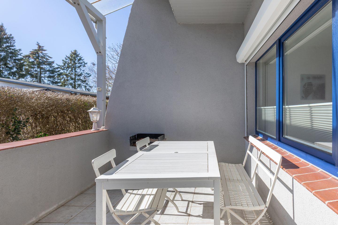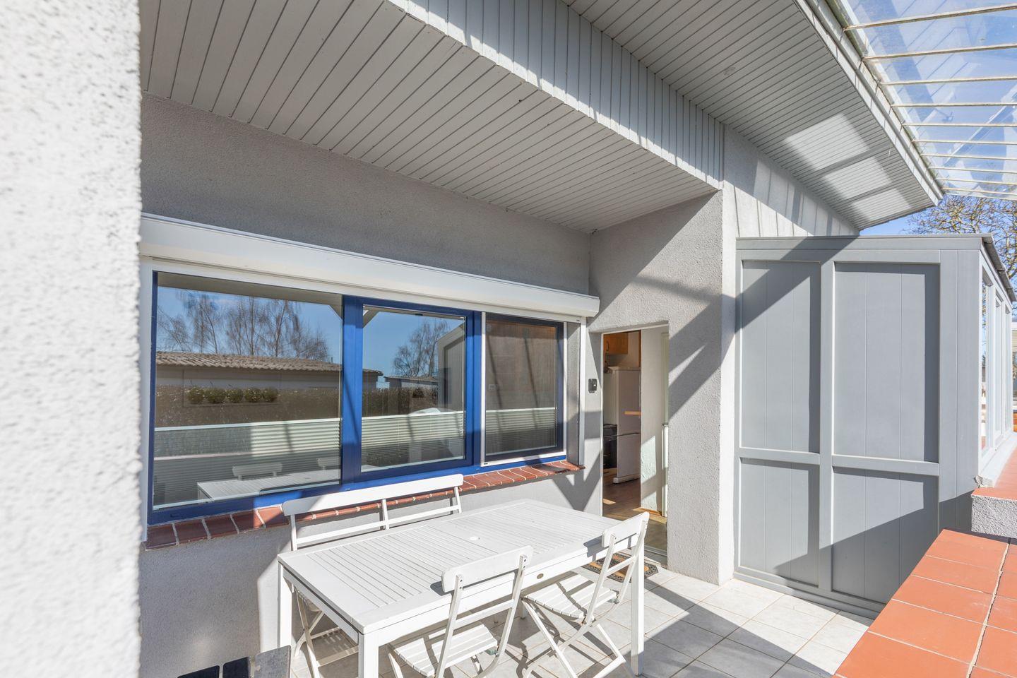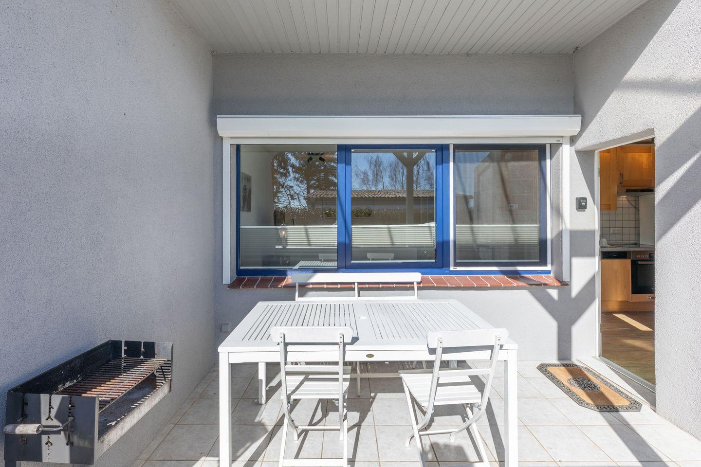 Auf der überdachten Terrasse können Sie den Tag gemütlich ausklingen lassen.