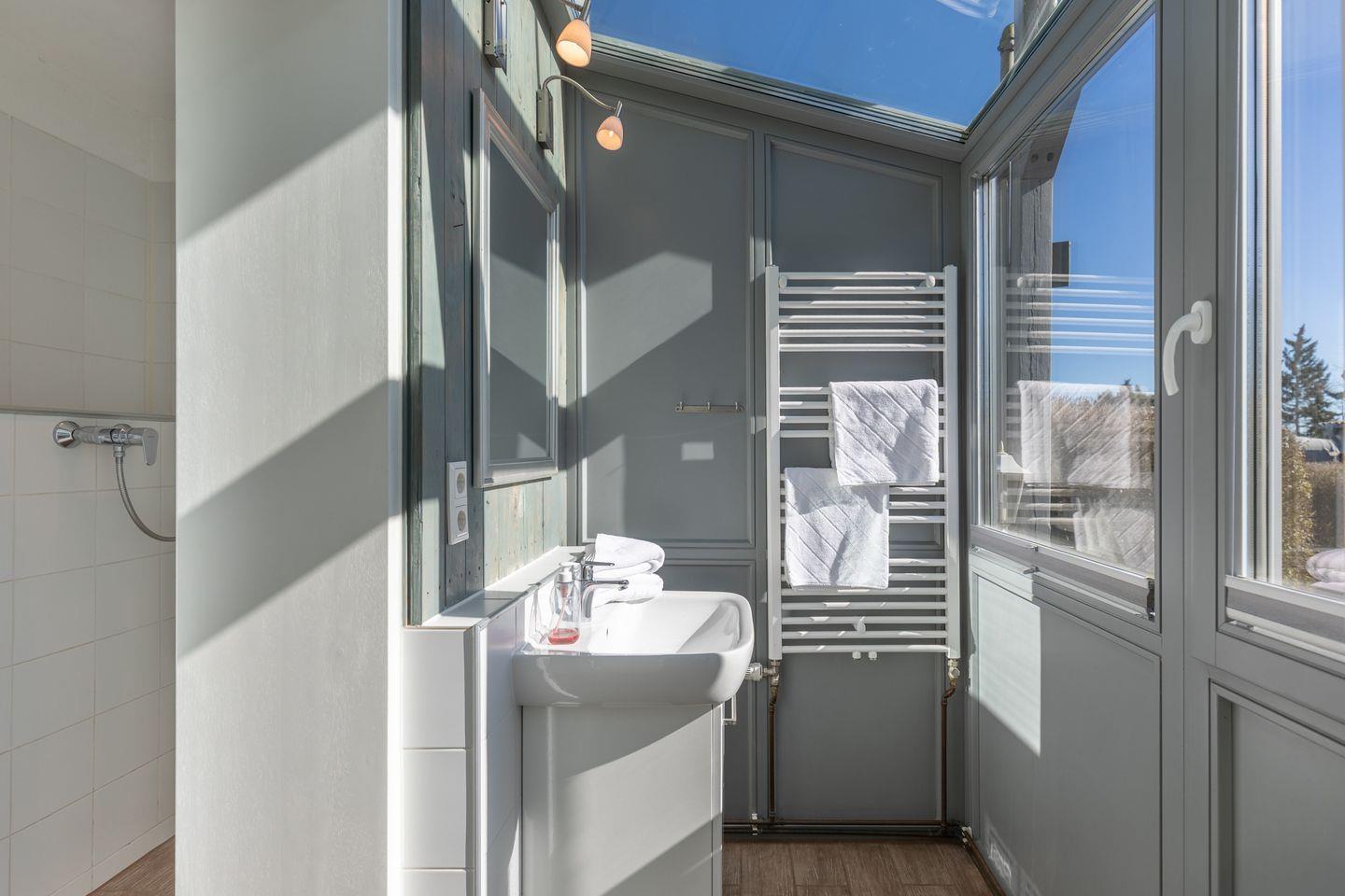 Das schicke, moderne Duschbad ist lichtdurchflutet.