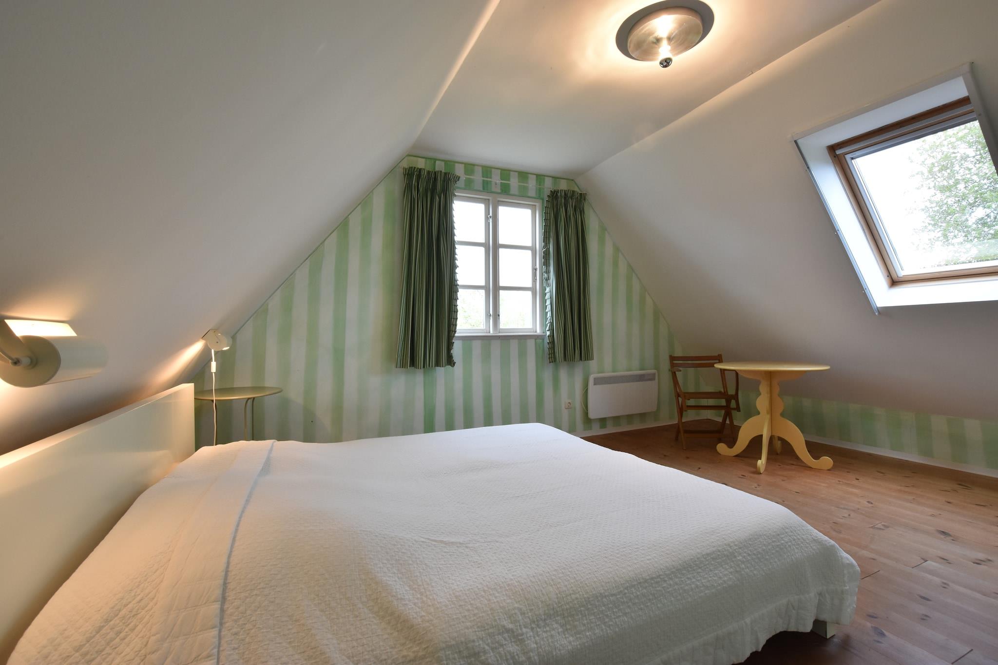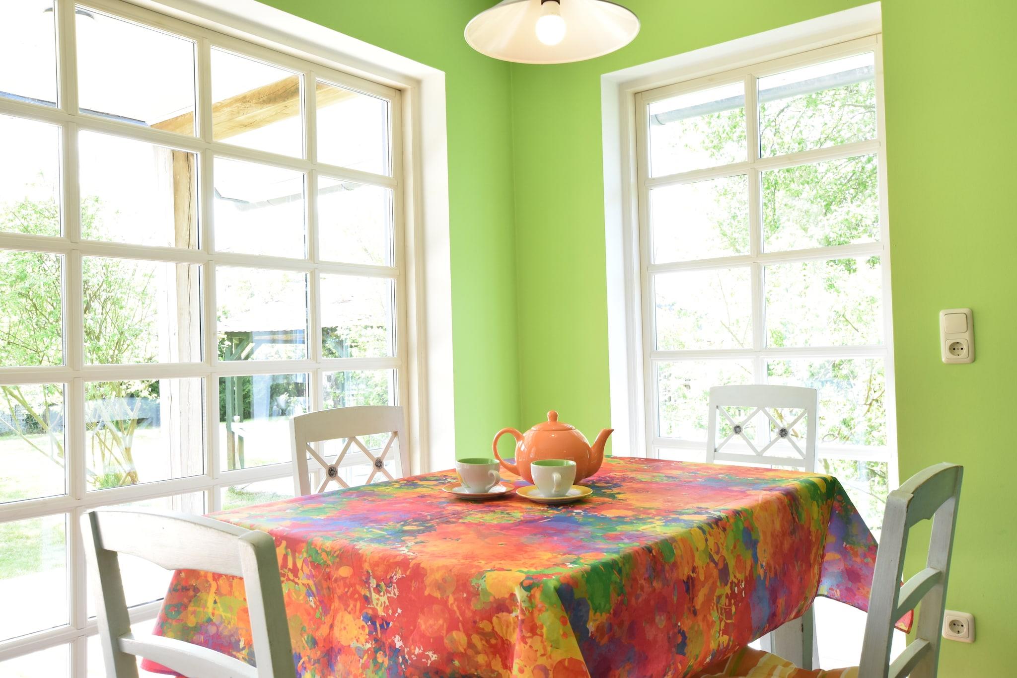 Dieses charmante Sommerferienhaus lädt seine Gäste zu einem ruhigen Rückzugsort nur wenige Schritte von der wunderschönen Ostseebucht Salzhaff ein. Eingebettet in ein großzügiges Gartengrundstück mit alten Obstbäumen, Himbeerhecken und Sträuchern bietet das Anwesen eine entspannte Atmosphäre, die durch einen schönen Gartenpavillon noch verstärkt wird. Das gemütliche Haus verfügt über zwei Schlafzimmer, die über eine Wendeltreppe erreichbar sind, und einen einladenden Kamin – ideal zum Entspannen nach einem erlebnisreichen Tag. Der nahegelegene wildromantische Strand am Salzhaff ist nur fünf Gehminuten entfernt. Das sanft abfallende Wasser erwärmt sich schnell – ideal für Familien mit Kindern. Das kunstvoll und farbenfroh gestaltete Haus verfügt außerdem über eine überdachte Veranda, die bei jedem Urlaubswetter ein gemütliches Plätzchen bietet. Das Haus ist komplett ausgestattet und bietet alles, was Sie für einen komfortablen Aufenthalt benötigen, einschließlich Endreinigung und verbrauchsabhängiger Energiekosten. Dieses Ferienhaus liegt im ruhigen Dorf Roggow, nur 4 Kilometer vom Ostseebad Rerik entfernt, und bietet hervorragende Möglichkeiten für Ausflüge mit dem Fahrrad, dem Auto oder zu Fuß. Naturliebhaber werden den nahegelegenen Wanderweg entlang des Deichs durch Salzwiesen und Schilf zu schätzen wissen, wo seltene Wasservögel, Watvögel, Wildgänse und Kraniche beobachtet werden können. Bitte beachten Sie, dass in dieser Unterkunft kein WLAN verfügbar ist. Haustiere sind willkommen, was die Unterkunft zu einem idealen Rückzugsort für die ganze Familie macht.