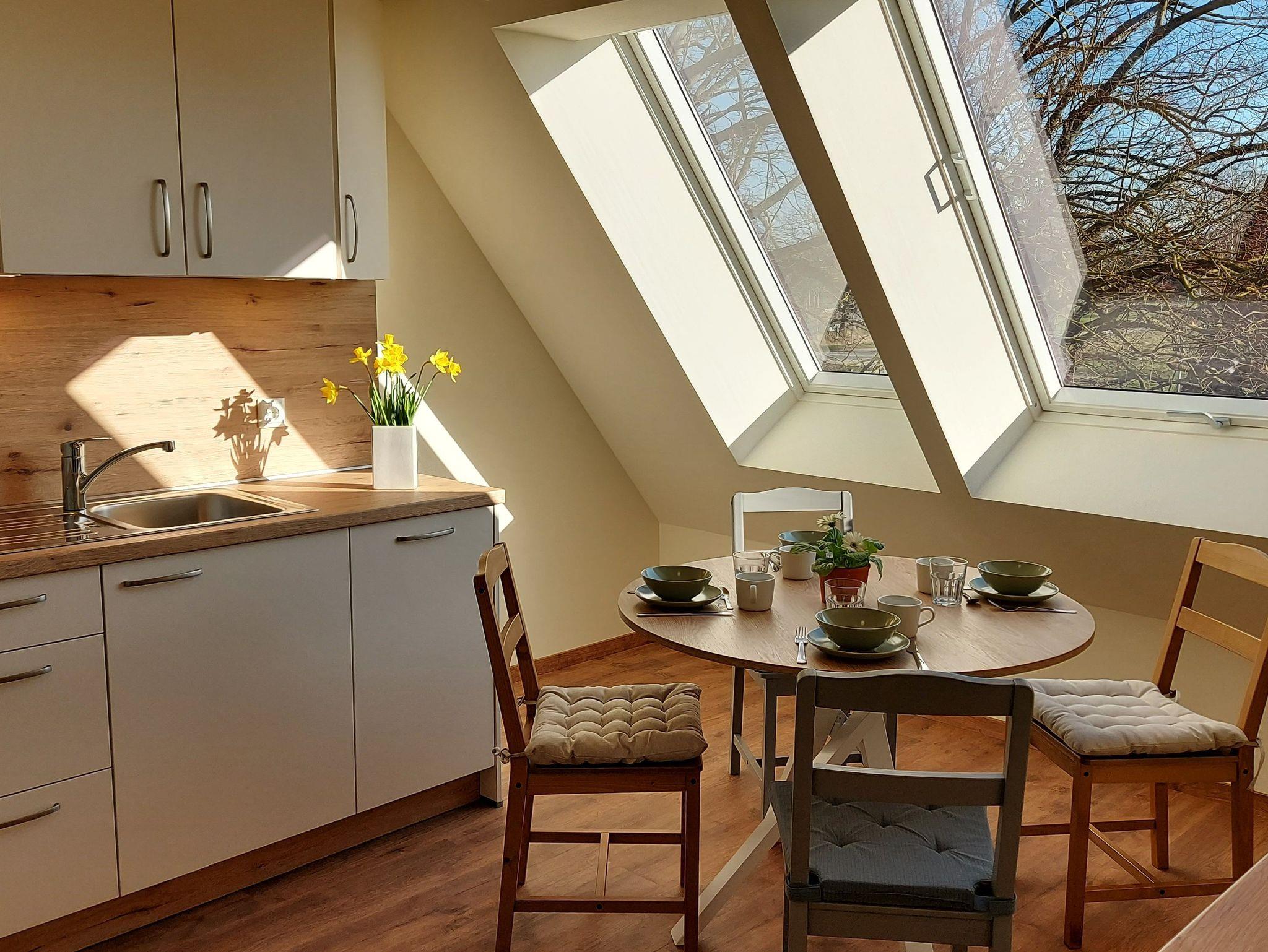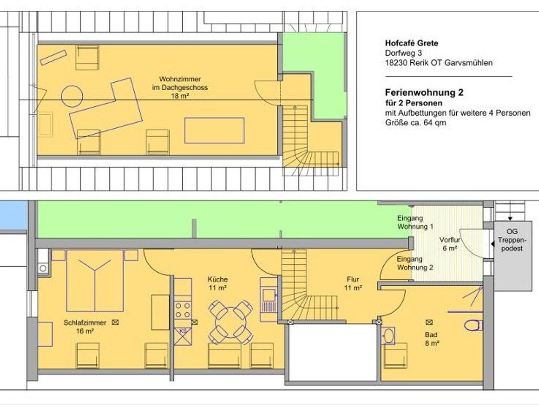 2-Raum-Ferienwohnung mit 64 qm auf zwei Ebenen mit Platz für 2 bis 4 Personen + 1 Kind (max.14 Jahre). Eine Gartenfläche kann auf dem Hof zum Grillen & Verweilen genutzt werden und ist ideal für Familien oder Gruppen.
