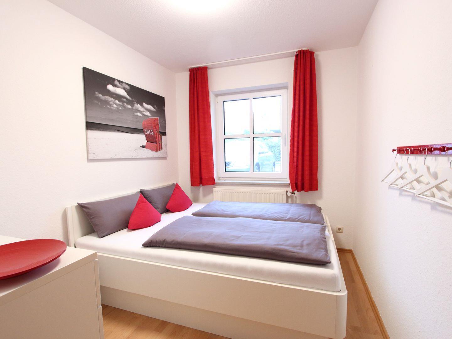 Im kleinen Schlafzimmer befindet sich ein Doppelbett 160x200.
