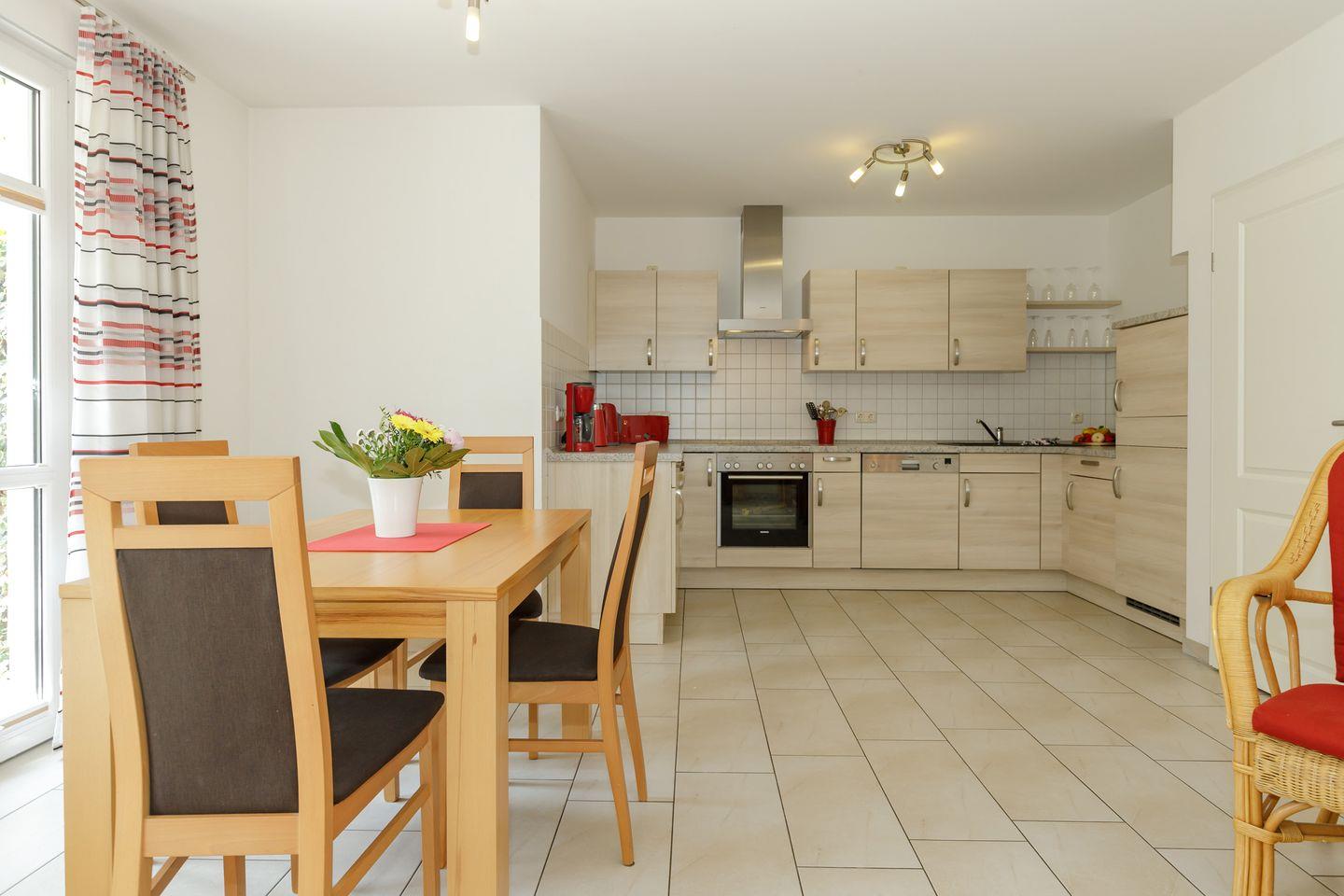 Ein besonderes Highlight ist die eigene Terrasse mit Gartenmöbeln und Sonnenschirm sowie Blick ins gepflegte Gartengrün – der ideale Rückzugsort zum Frühstücken oder Entspannen nach einem Strandtag. Die Wohnung ist zudem haustierfreundlich (max. 2 Tiere), kinderfreundlich und als Nichtraucherobjekt ausgewiesen. Jugendgruppen sind nicht gestattet.