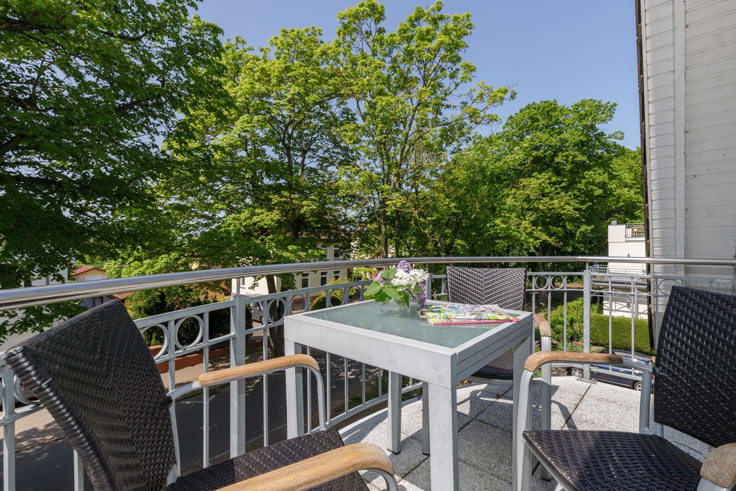Vom Wohnbereich gelangen Sie auf den unteren Balkon.