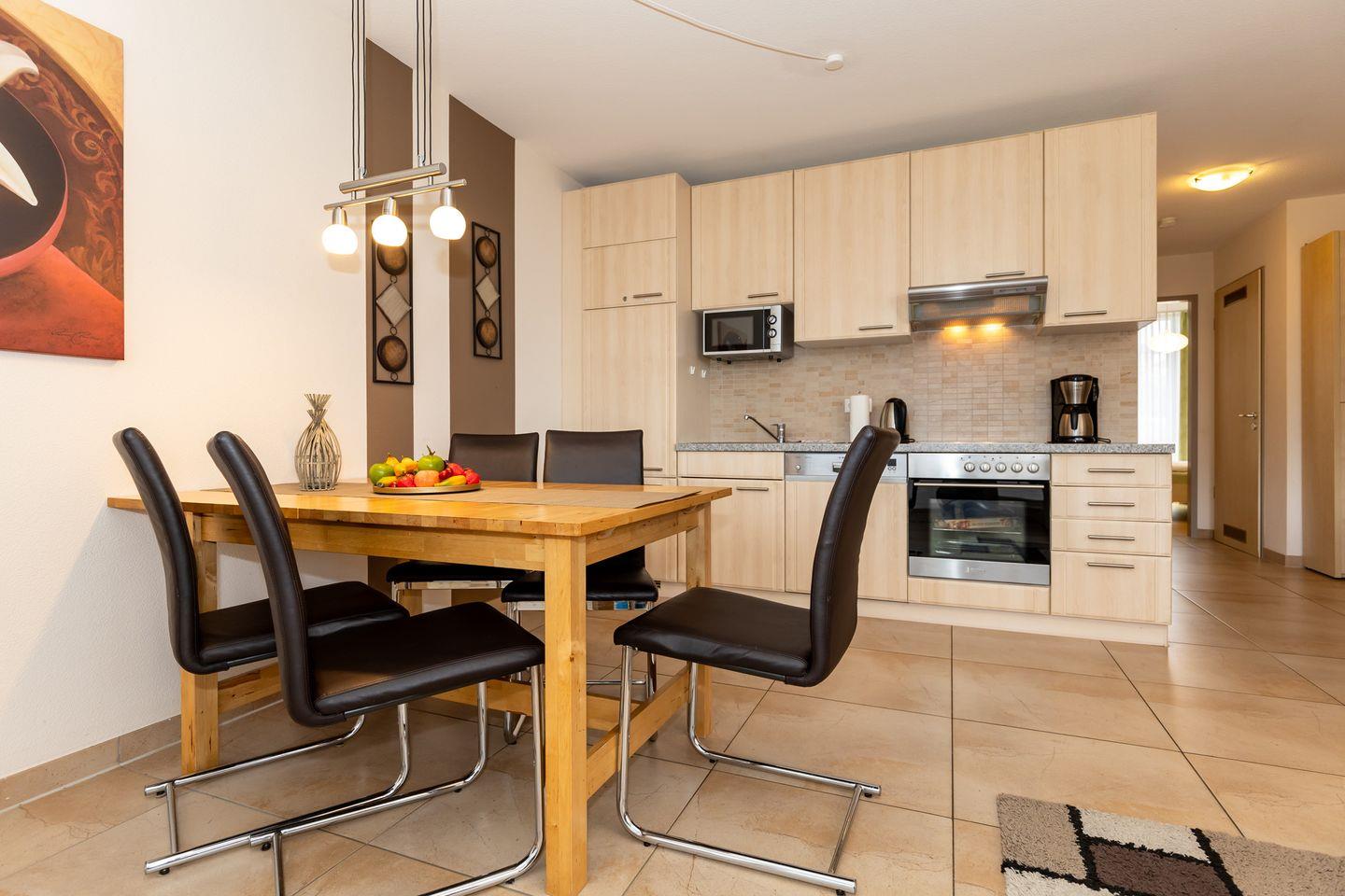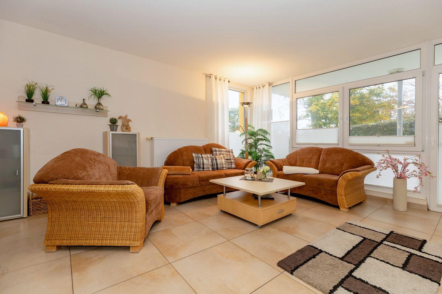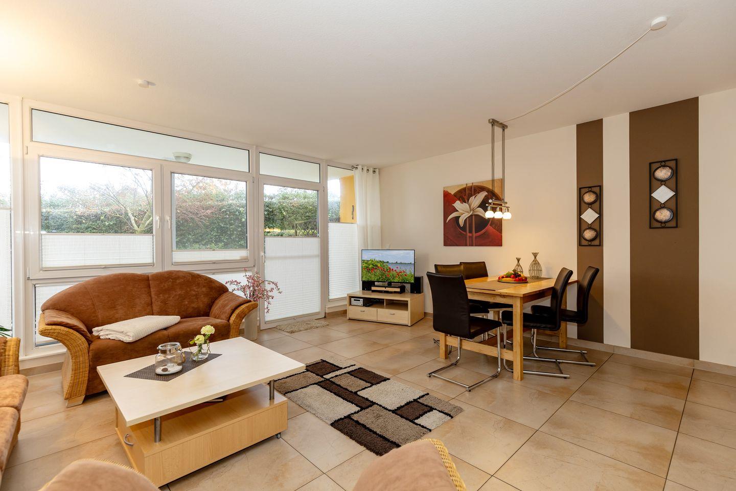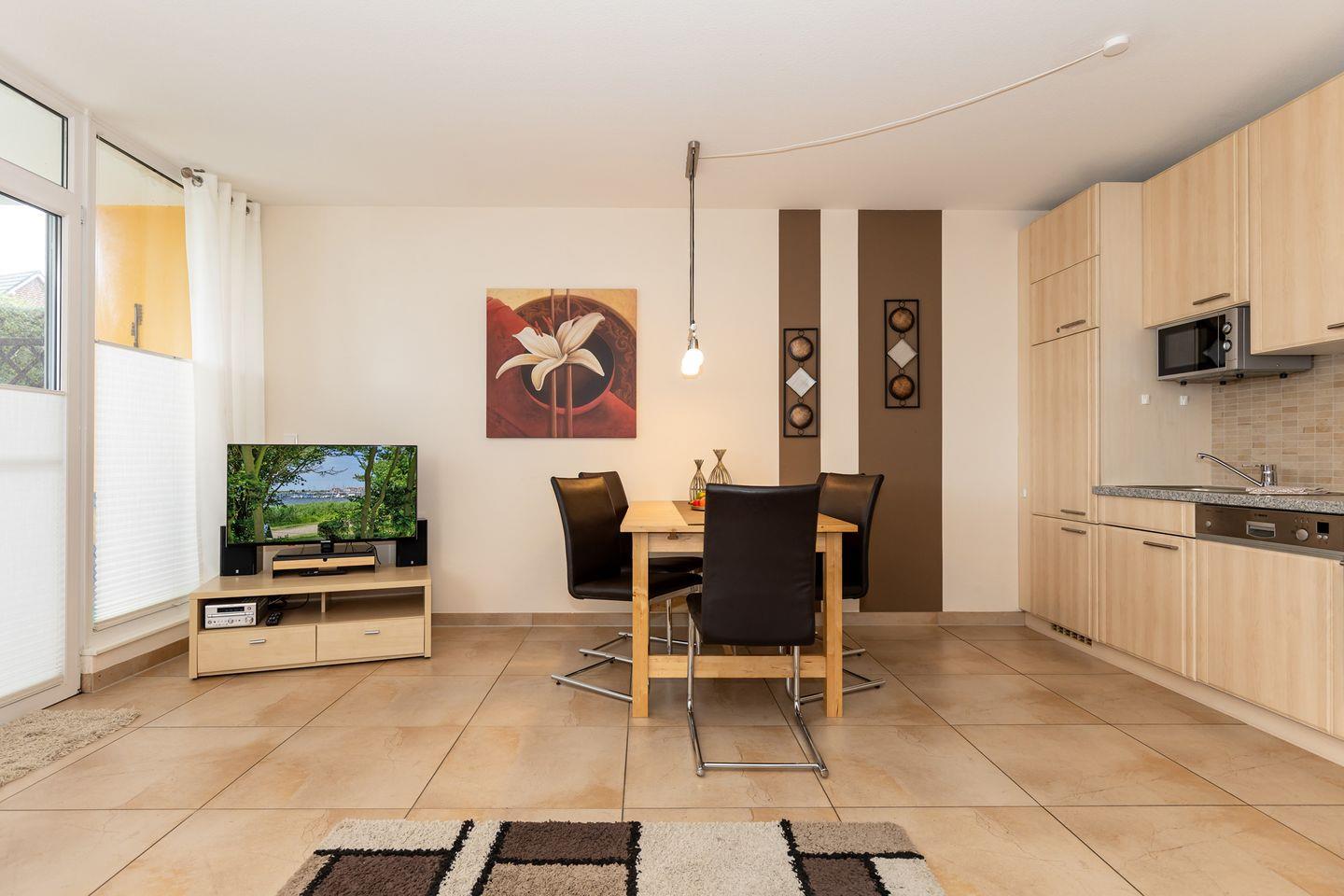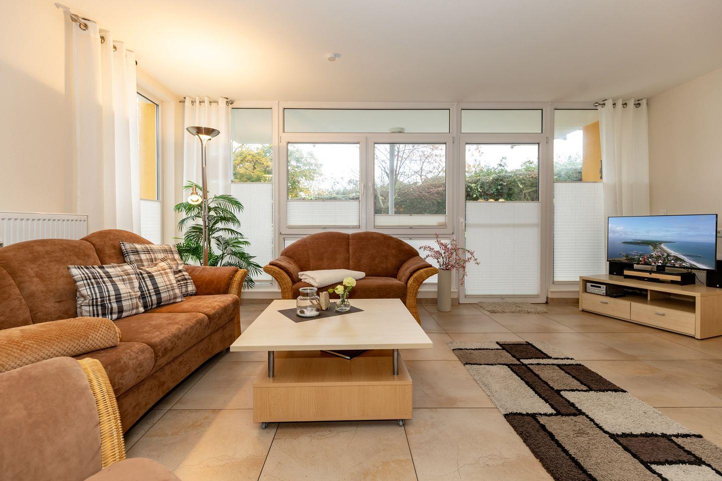 Die geschmackvoll und hochwertig eingerichtete 3-Raum-Wohnung befindet sich im EG der „Residenz Meeresblick“.