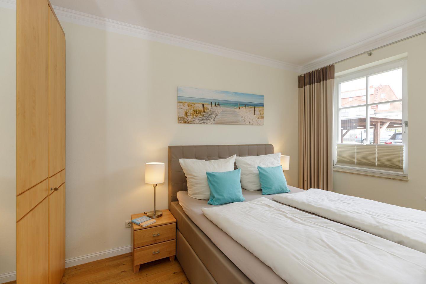 Das Schlafzimmer mit Boxspringbett (160x200) bietet Ihnen erholsamen Schlaf.