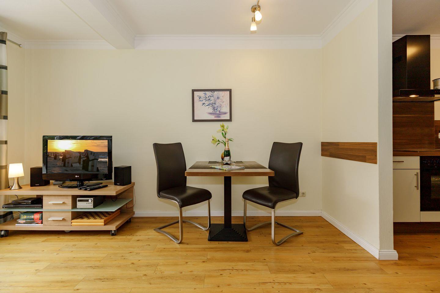 Die sehr geschmackvoll und hochwertig eingerichtete 2-Raum-Wohnung befindet sich im EG der Residenz Leuchtturm.