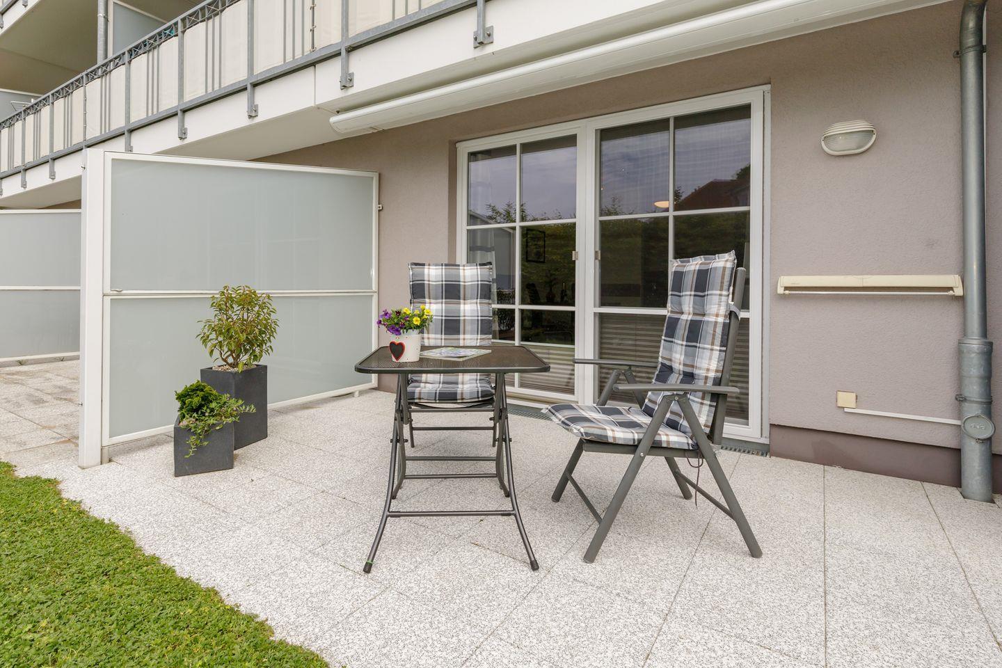 Gemütliche 2-Raum-Ferienwohnung mit großer Terrasse, nur 300 m vom Strand in Rerik entfernt.
