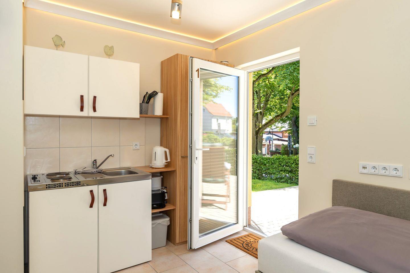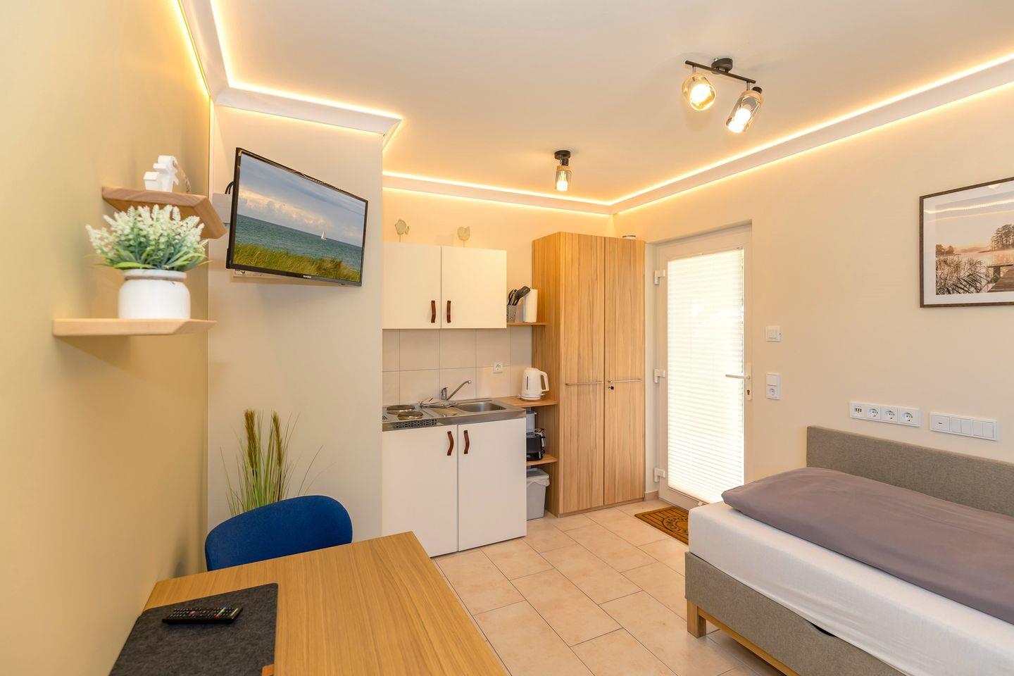 Moderne, strandnahe 1-Zimmer-Ferienwohnung in Rerik mit Terrasse und WLAN, ideal für Einzelreisende.