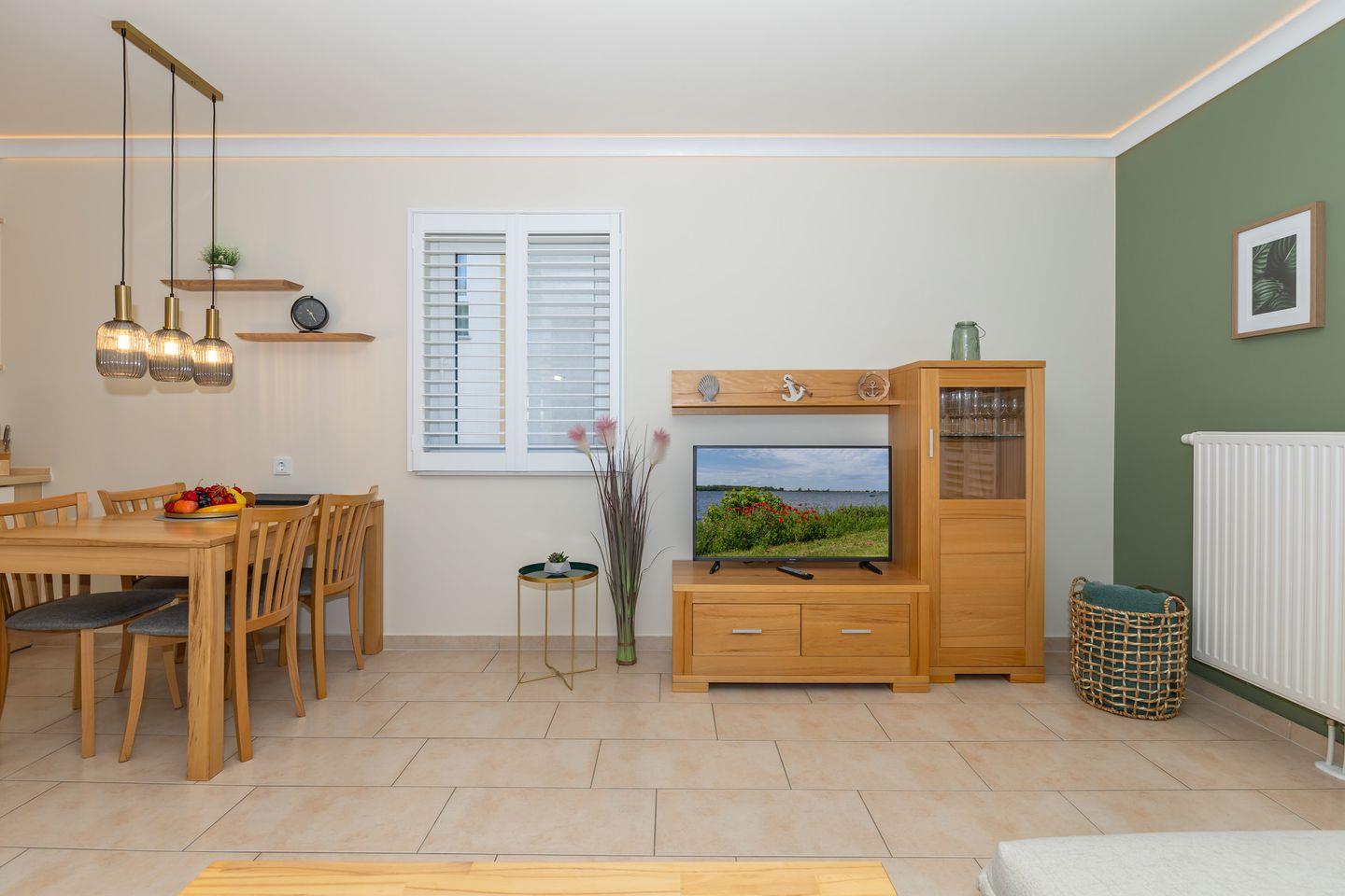 Zu Ihrer Unterhaltung stehen Ihnen in der Ferienwohnung ein modernes Flachbild-TV-Gerät sowie eine Stereo-Anlage mit Radio und CD-Player zur Verfügung. Darüber hinaus verfügt die Wohnung über kostenfreies WLAN.