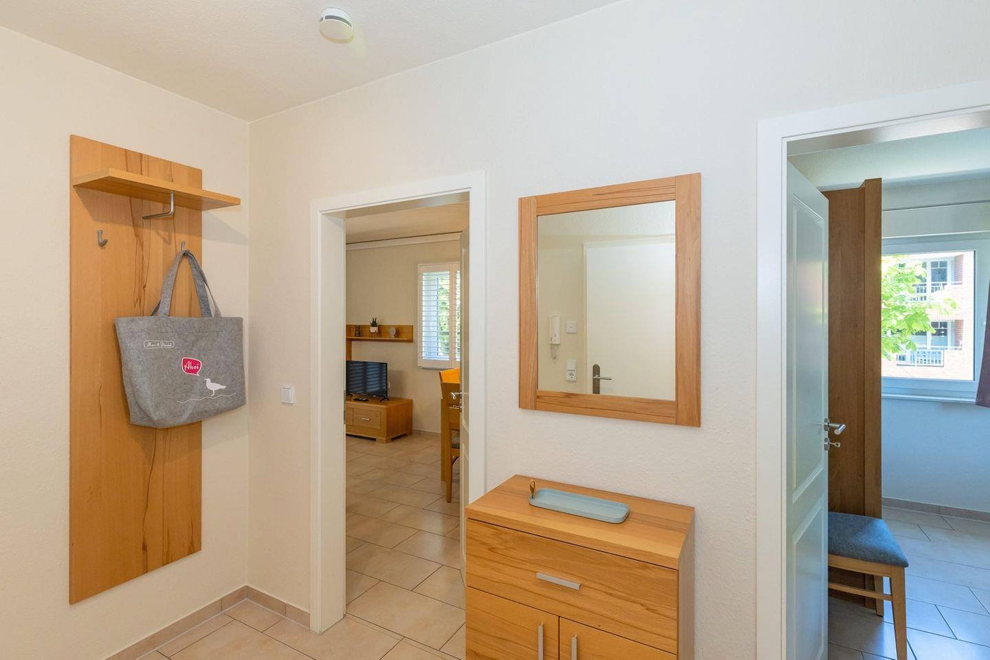 Vom Flur mit Garderobe, Spiegel und Kommode erreichen Sie bequem alle Räume Ihrer Ferienwohnung.