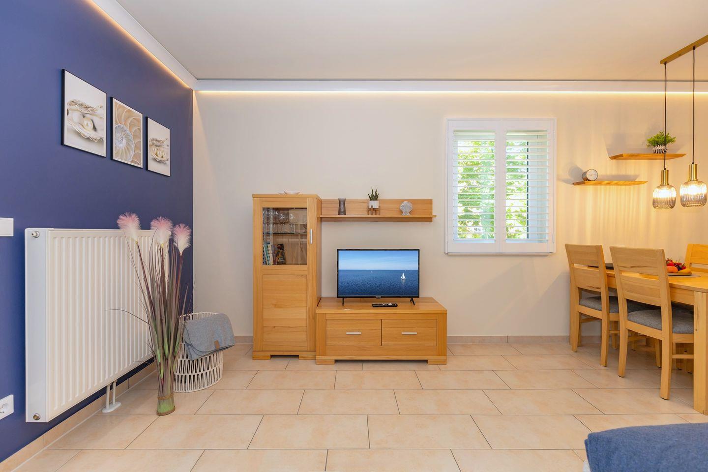 Zu Ihrer Unterhaltung stehen Ihnen in der Ferienwohnung ein modernes Flachbild-TV-Gerät sowie eine Stereo-Anlage mit Radio und CD-Player zur Verfügung. Darüber hinaus verfügt die Wohnung über kostenfreies WLAN.