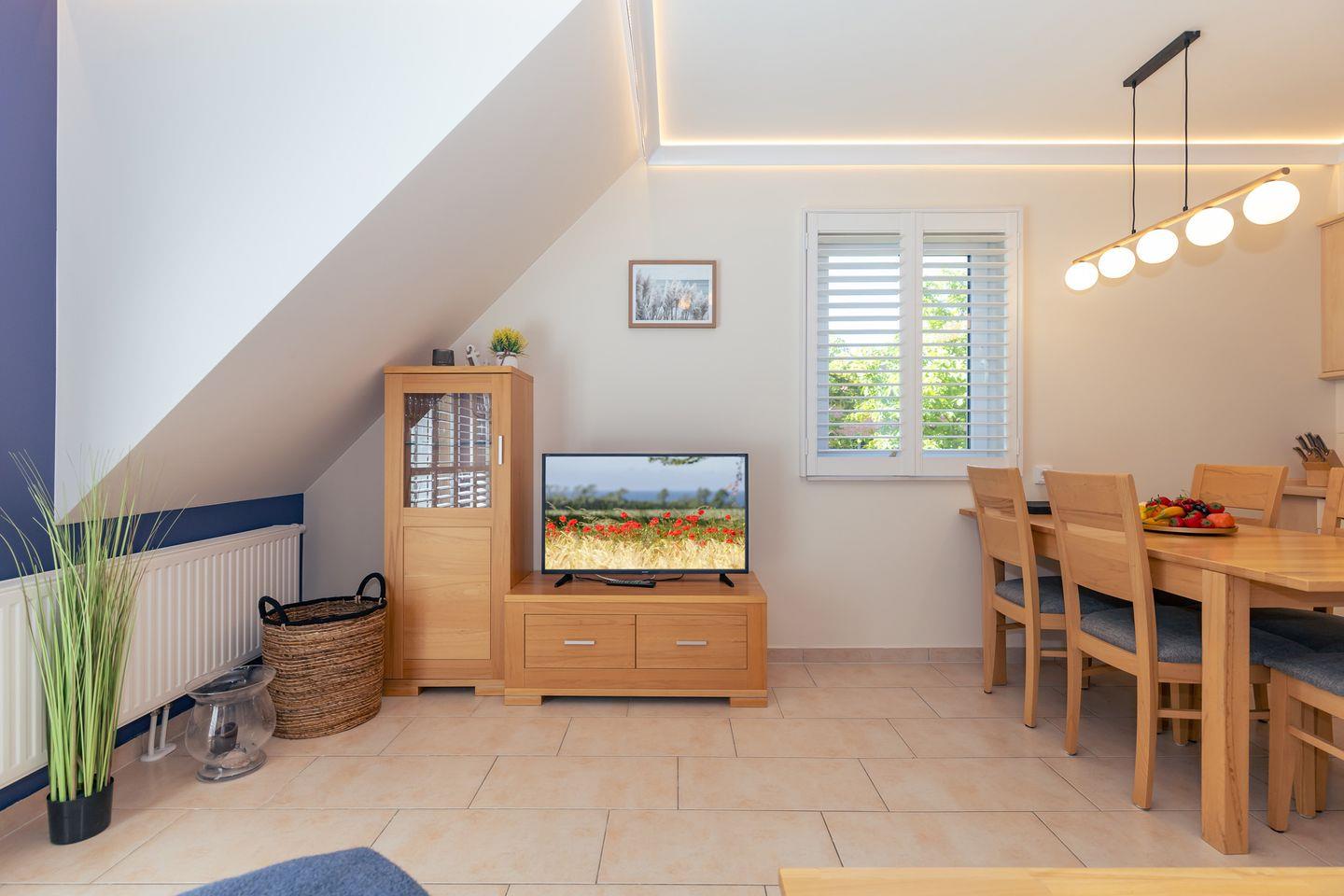 Zu Ihrer Unterhaltung stehen Ihnen in der Ferienwohnung ein modernes Flachbild-TV-Gerät sowie eine Stereo-Anlage mit Radio und CD-Player zur Verfügung. Darüber hinaus verfügt die Wohnung über kostenfreies WLAN.