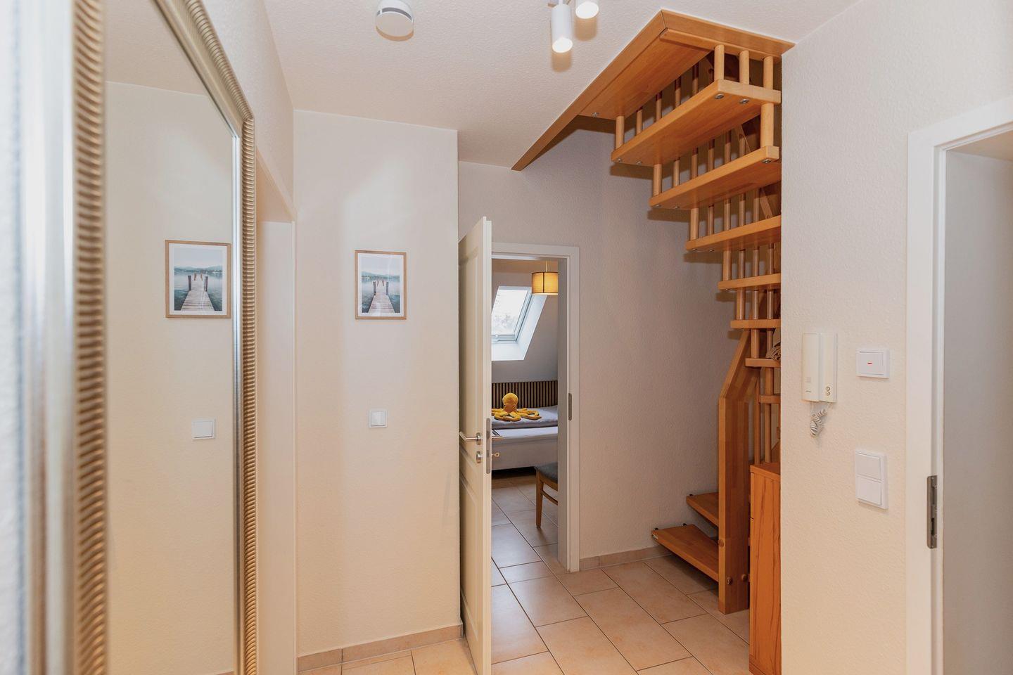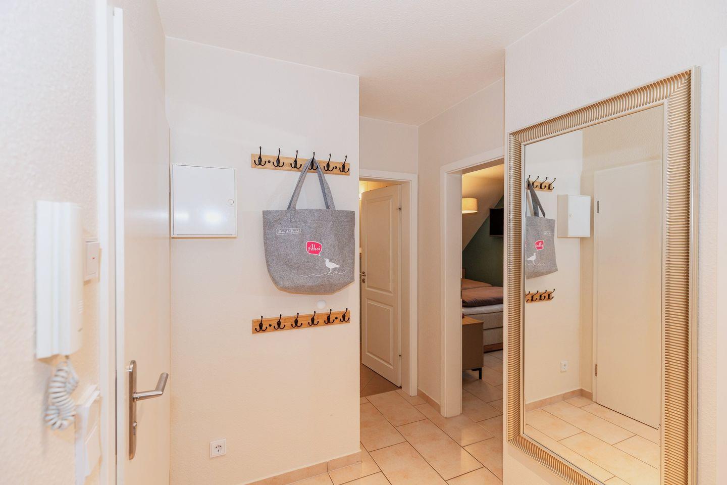 Vom Flur mit Garderobe, Spiegel und Kommode erreichen Sie bequem alle Räume Ihrer Ferienwohnung.