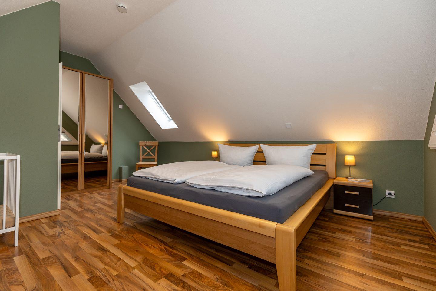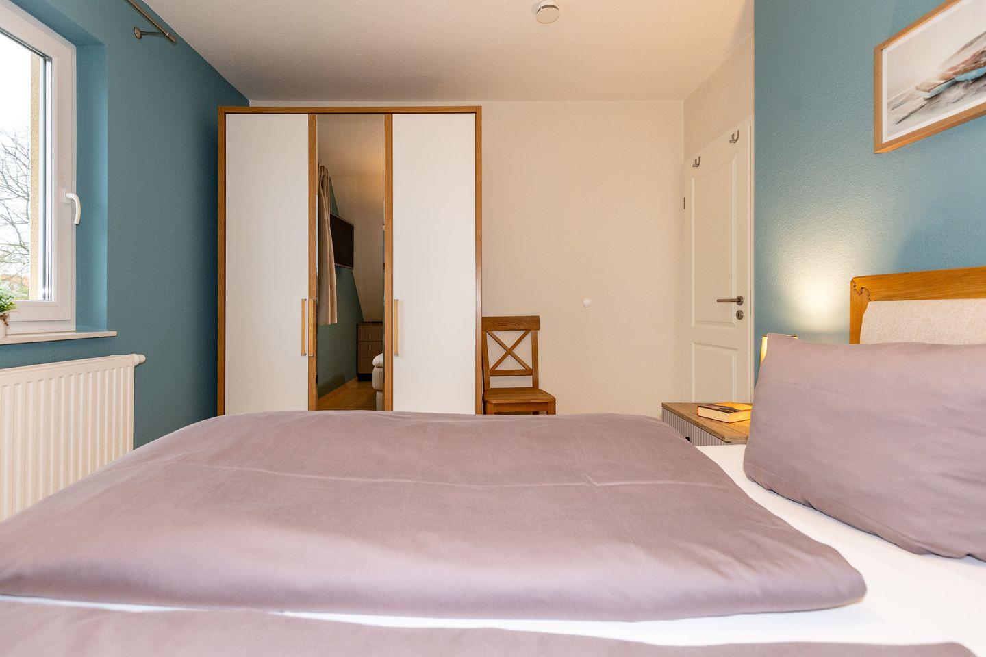 Das gemütliche 1. Schlafzimmer ist mit einem bequemen Boxspringdopelbett, Nachttischen sowie einem geräumigen Kleiderschrank und einemFernseher eingerichtet. Das separate 2. Schlafzimmer verfügt über ein Boxspring-Einzelbett, einen Nachttisch, sowie einen Kleiderschrank. Das separate 3. Schlafzimmer in der 2. Etage ist mit einem bequemen Doppelbett, Nachttischen, einem Kleiderschrank sowie einem Schlafsessel für 1 Person und einem Babybett ausgestattet. Bettwäsche und Handtücher können hinzugebucht werden.