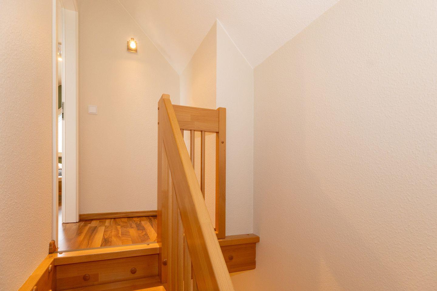 Die moderne und helle 4-Zimmer-Wohnung (ca. 68 m²) für bis zu 6 Personen befindet sich im 2. OG / Dachgeschoss (über 2 Etagen) und besitzt ein hohes Maß an Funktionalität und wurde 2023 generalüberholt. Die Fußböden in der 1. Etage sind alle gefliest, der Bodenbelag im zusätzlichen Schlafzimmer in der 2. Etage ist Holzlaminat.