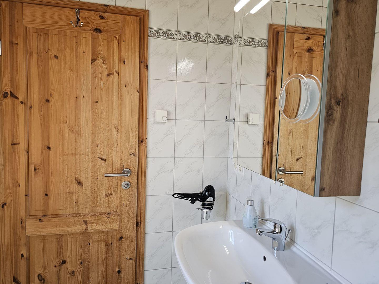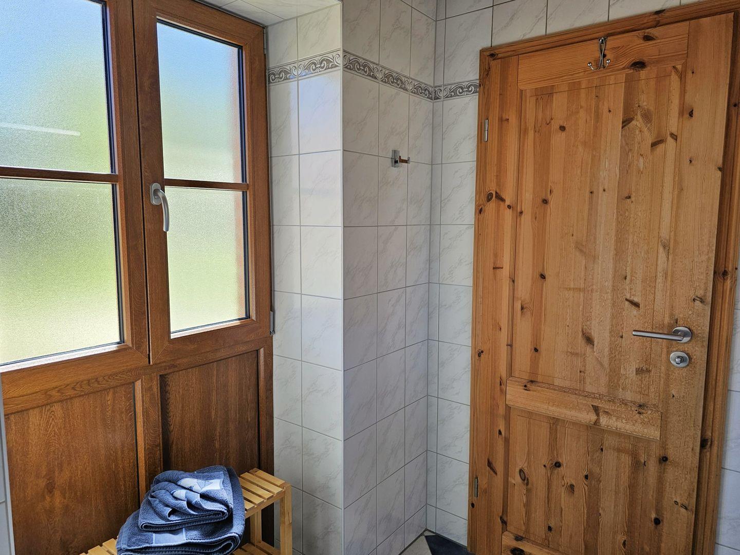Im Erdgeschoss erwartet Sie der Wohn-Essbereich mit einer sehr gemütlichen Eckcouch und Flachbildfernseher, dazu eine vollausgestattete Küche und ein Bad mit bodengleicher Dusche, Föhn und Fußbodenheizung