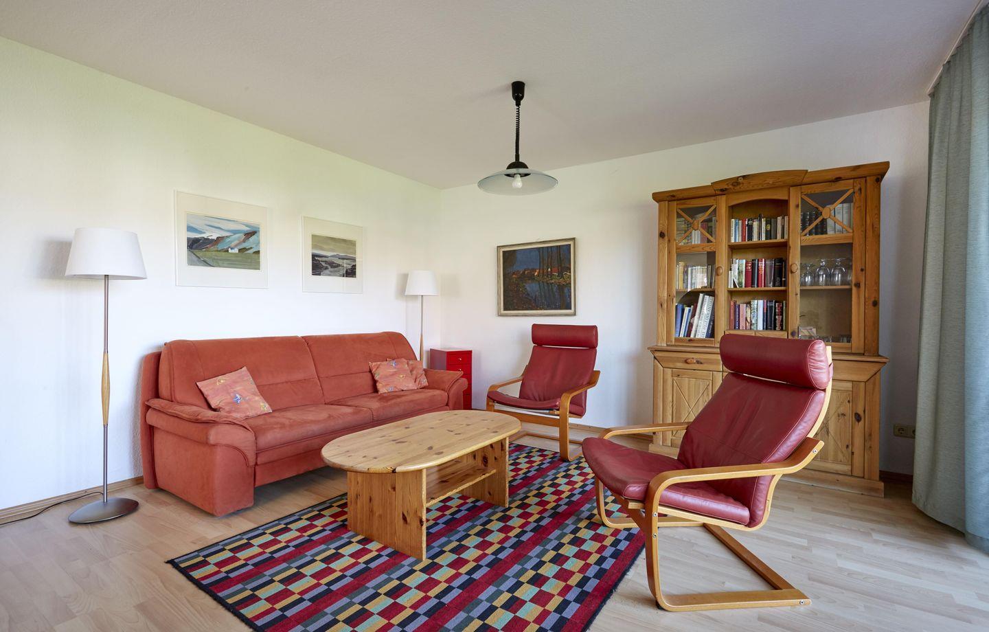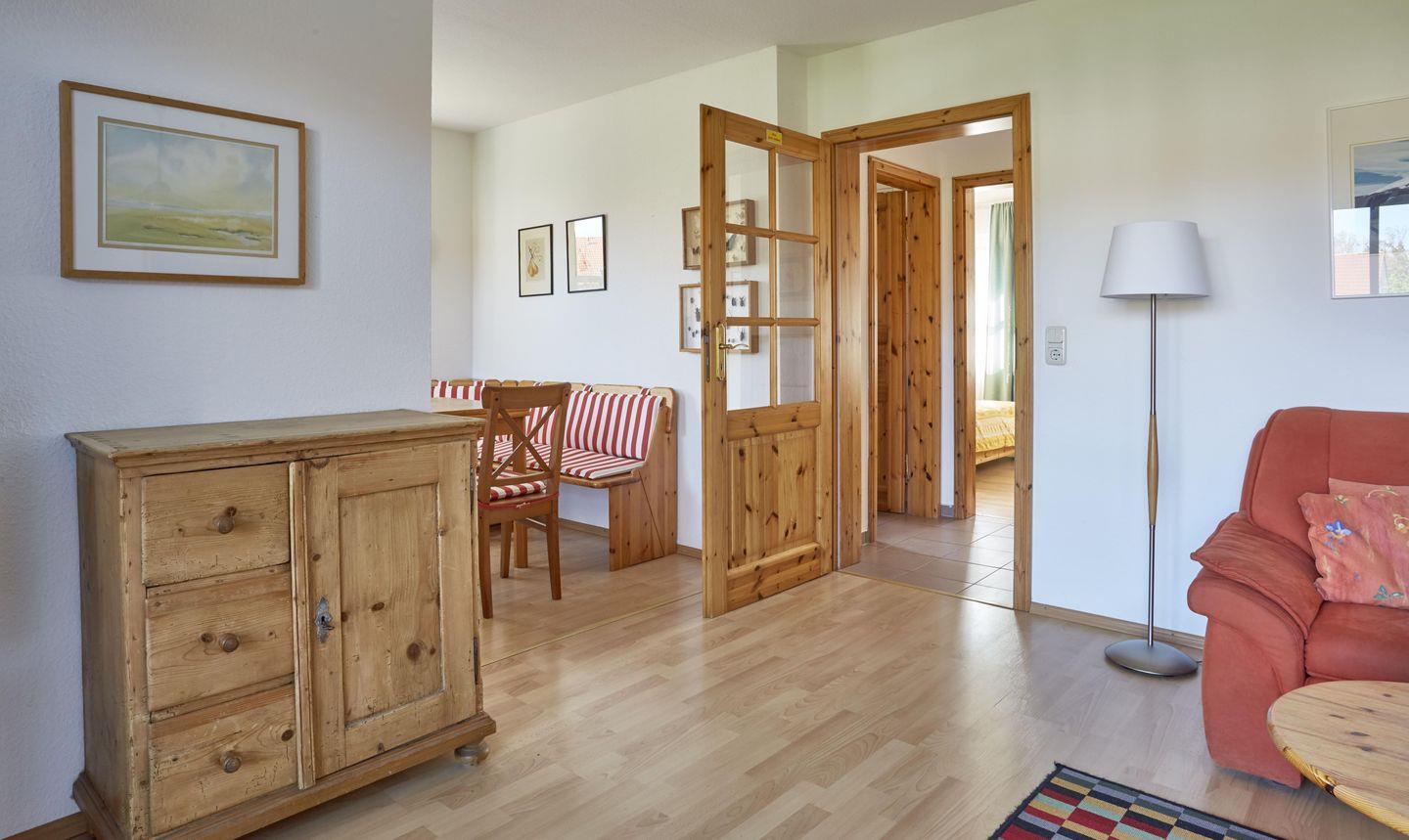 Diese ebenerdige Wohneinheit verfügt über ein Schlafzimmer mit einem Doppelbett (80 x 200 cm, getrennte Matratzen), ein geräumiges Bad und ein großzügiges Wohnzimmer mit Schlafcouch, die eine zusätzliche Schlafgelegenheit für zwei Personen bietet (ca. 120 x 200 cm, durchgehende Matratze).