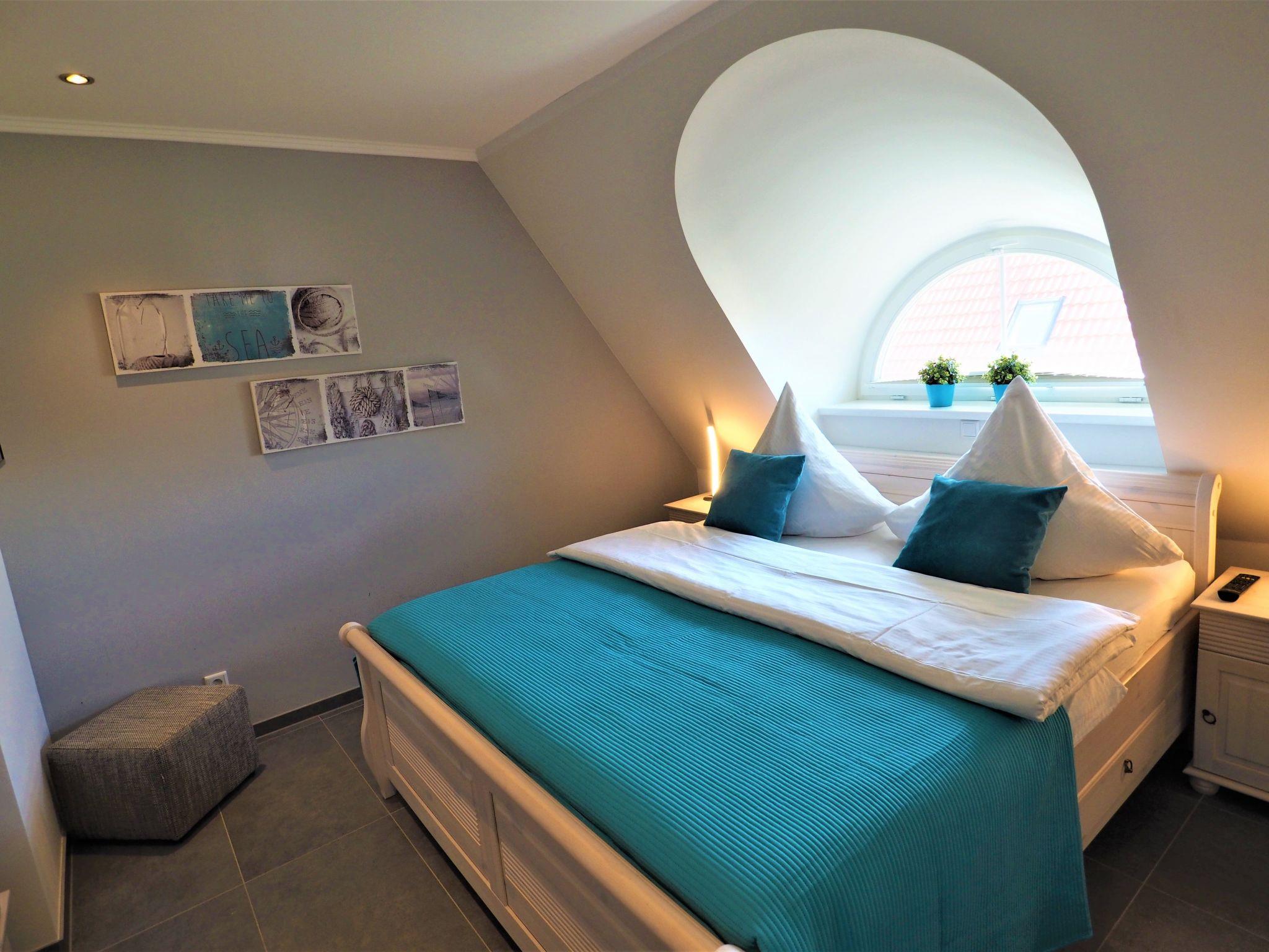 Die Eingangstür öffnen Sie mit Ihrem individuellen Zugangscode nach außen, so einfach gelangen Sie ins Haus. Im Erdgeschoss befindet sich ein großes Wohn-/Esszimmer mit einer gemütlichen Ledersitzecke, Kaminofen und einer großen Essecke sowie eine hochwertige und voll ausgestattete Einbauküche. Vom Wohn-/Esszimmer gelangen Sie auf die große Terrasse. Zusätzlich gibt es ein großes Duschbad mit Sauna. Wenn Sie gerade einmal nicht unterwegs sein sollten, können Sie von der Wohnlandschaft Sat.-TV oder einen guten Film auf DVD genießen. Wer es lieber musikalisch mag, dem steht eine Stereoanlage mit Radio/CD sowie iPod und USB-Anschluss zur Verfügung. Oder Sie entspannen vor dem Kaminofen und lauschen dem Knistern des Kaminfeuers. Damit Sie auch im Urlaub Ihrem kulinarischem Hobby frönen können, steht Ihnen eine moderne, vollausgestattete und großzügige Wohnküche zur Verfügung. Sie bietet Ihnen einen großen Kühlschrank mit Eisfach, Induktionskochfeld, Dunstabzugshaube, hochgestellten Backofen, Spülmaschine, Mikrowelle etc. Das moderne Bad mit angeschlossener Sauna besteht aus: einer bodengleichen Dusche, Toilette sowie einem Waschbecken. Über eine Doppelflügeltür gelangen Sie nach dem Saunagang an die frische Ostseeluft. Im ersten Obergeschoss finden Sie insgesamt drei Schlafzimmer und ein Badezimmer. Zwei Schlafzimmer haben je ein Doppelbett (180 cm x 200 cm), zwei Nachtkonsolen, zwei Hocker, Kleiderschrank und Sat.-TV. Ein Schlafzimmer besteht aus zwei Einzelbetten (90 cm x 200 cm), Nachtablagen, Hocker, Board und Sat.-TV. Alle Betten verfügen über verstellbare Lattenroste und hochwertige Matratzen und haben Komforthöhe. Außerdem finden Sie auf dieser Ebene ein schönes Wellnessbad zum Relaxen mit Badewanne, bodengleicher Dusche, Toilette, Handwaschbecken und Haartrockner. Zur Sicherung unserer kleinen Gäste haben wir das Obergeschoss mit Kindersicherheitstüren an der Treppe ausgestattet. Der Spitzboden ist das optimale Domizil für Ihre Kinder. Sie nächtigen in zwei Kojenbetten (90 cm x 200 cm). Wer im Urlaub lernen oder arbeiten möchte, findet hier einen Schreibtisch vor – einen WLAN Zugang erhalten Sie kostenlos. Zur Entspannung dient die Lümmelecke mit zwei Sitzsäcken und Sat.-TV.