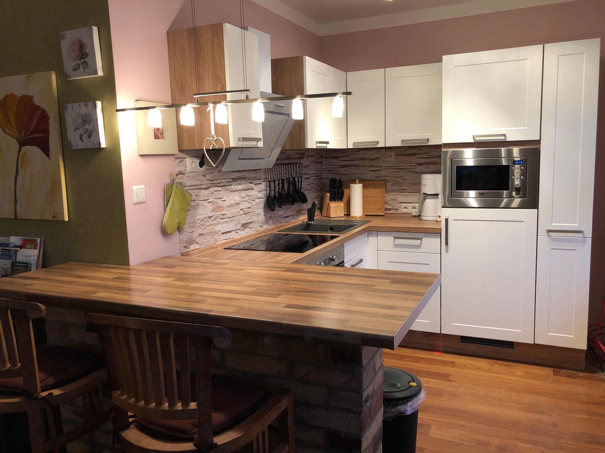 Das Herzstück dieser charmanten Unterkunft bildet eine einladende Wohnküche, ausgestattet mit allem, was Sie für einen selbstversorgenden Urlaub benötigen. Von der Cerankochfläche bis zur Spülmaschine, Wasserkocher und Kaffeemaschine, hier finden Sie Komfort und Praktikabilität vereint. Zu den weiteren Annehmlichkeiten gehören eine Waschmaschine und ein Wäschetrockner zur alleinigen Nutzung, die Ihren Aufenthalt ebenso unkompliziert machen. Die teilweise vorhandene Fußbodenheizung sorgt in kühleren Monaten für behagliche Wärme.