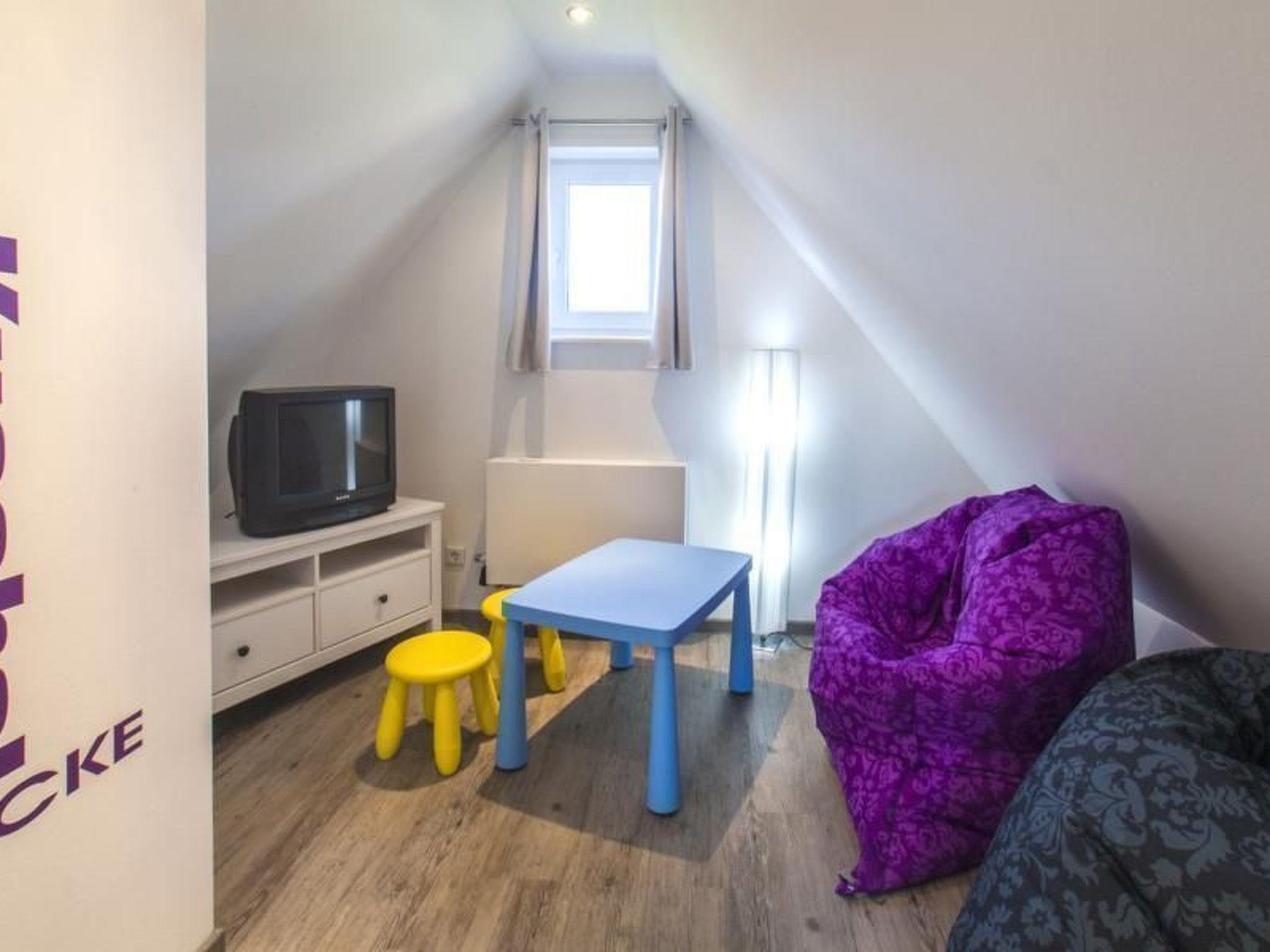Kostenloses WLAN. Für Allergiker wurden das Unter- und das Obergeschoss komplett gefliest, der Spitzboden ist mit Vinyl ausgelegt. Für Kleinkinder steht ein Kindertisch mit zwei Hockern zur Verfügung. Kindergeschirr sowie -besteck gehört ebenso zum Inventar. Hunde sind willkommen - Heimtextilien, Couch sowie sämtliche Betten sind allerdings tabu.