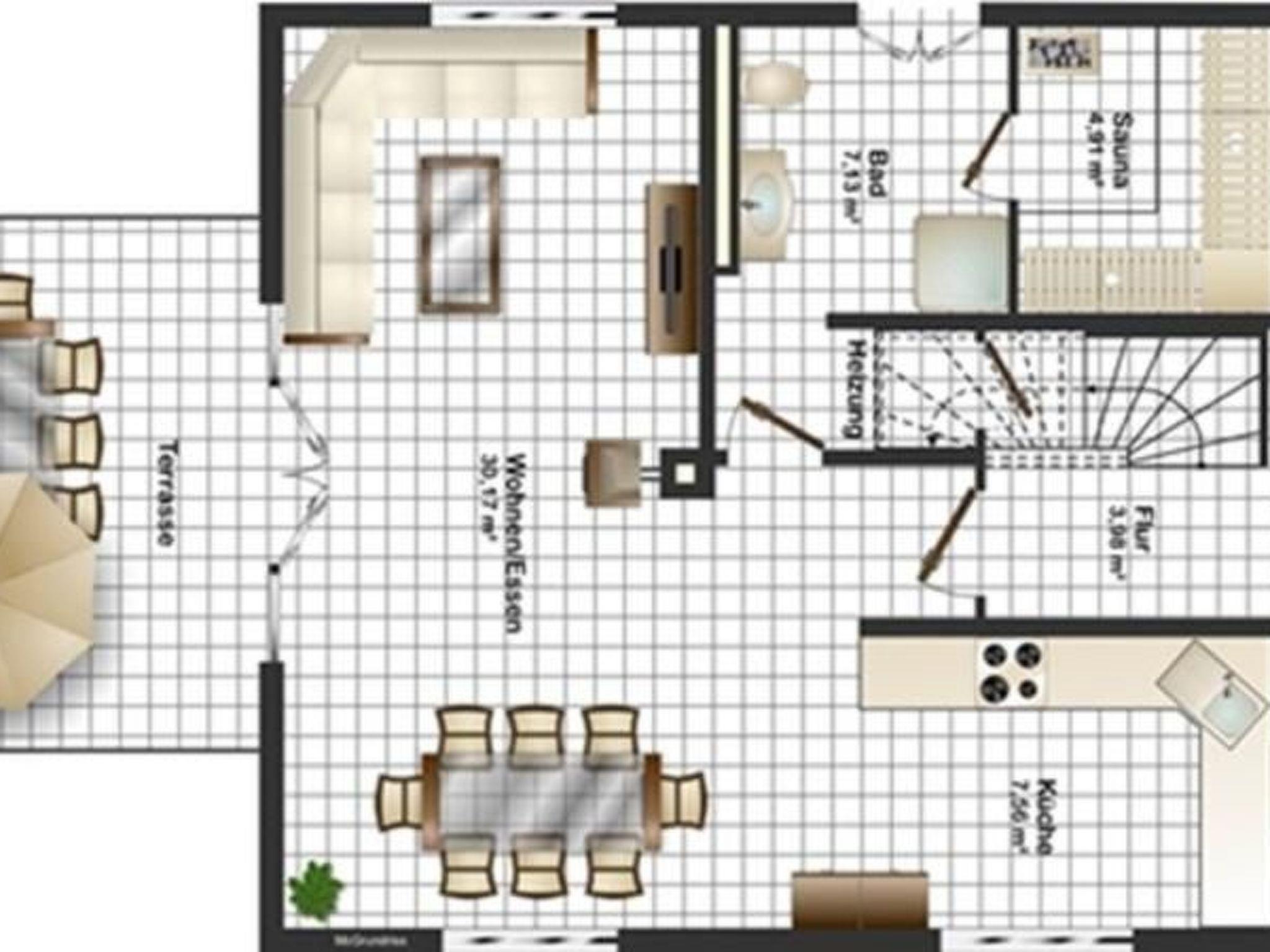 Über eine Doppelflügeltüre, die Sie mit Ihrem individuellen Code nach außen öffnen können, gelangen Sie ins Haus. Im Erdgeschoss befindet sich ein großes Wohn-/Esszimmer mit einer gemütlichen Ledersitzecke, Kaminofen und einem großen Esstisch für acht Personen sowie eine hochwertige und voll ausgestattete Einbauküche. Zusätzlich gibt es ein großes Duschbad mit Sauna. Wenn Sie gerade einmal nicht unterwegs sein sollten, können Sie von der Wohnlandschaft Sat.-TV oder einen guten Film auf DVD genießen. Wer es lieber musikalisch mag, dem steht eine Stereoanlage mit Radio/CD sowie iPod und USB-Anschluss zur Verfügung. Oder Sie entspannen vor dem Kaminofen und lauschen dem Knistern des Kaminfeuers. Damit Sie auch im Urlaub Ihrem kulinarischem Hobby frönen können, steht Ihnen eine moderne, vollausgestattete und großzügige Wohnküche zur Verfügung. Sie bietet Ihnen einen großen Kühlschrank mit Eisfach, Induktionskochfeld, Dunstabzugshaube, hochgestellten Backofen, Spülmaschine, Mikrowelle etc. Zusätzlich steht Ihnen eine Waschmaschine zur freien Verfügung. Für Ihr Kleinkind steht ein Kinderhochstuhl bereit. Das moderne Bad besteht aus einer Sauna, bodengleicher Dusche mit Glaskabine, Toilette sowie einem Waschbecken. Über eine Doppelflügeltür gelangen Sie nach dem Saunagang an die frische Ostseeluft. Für Ihre nassen Haare liegt ein Haartrockner bereit. Eine Fliegengittertür schützt Sie vor unliebsamen Besuchern.
