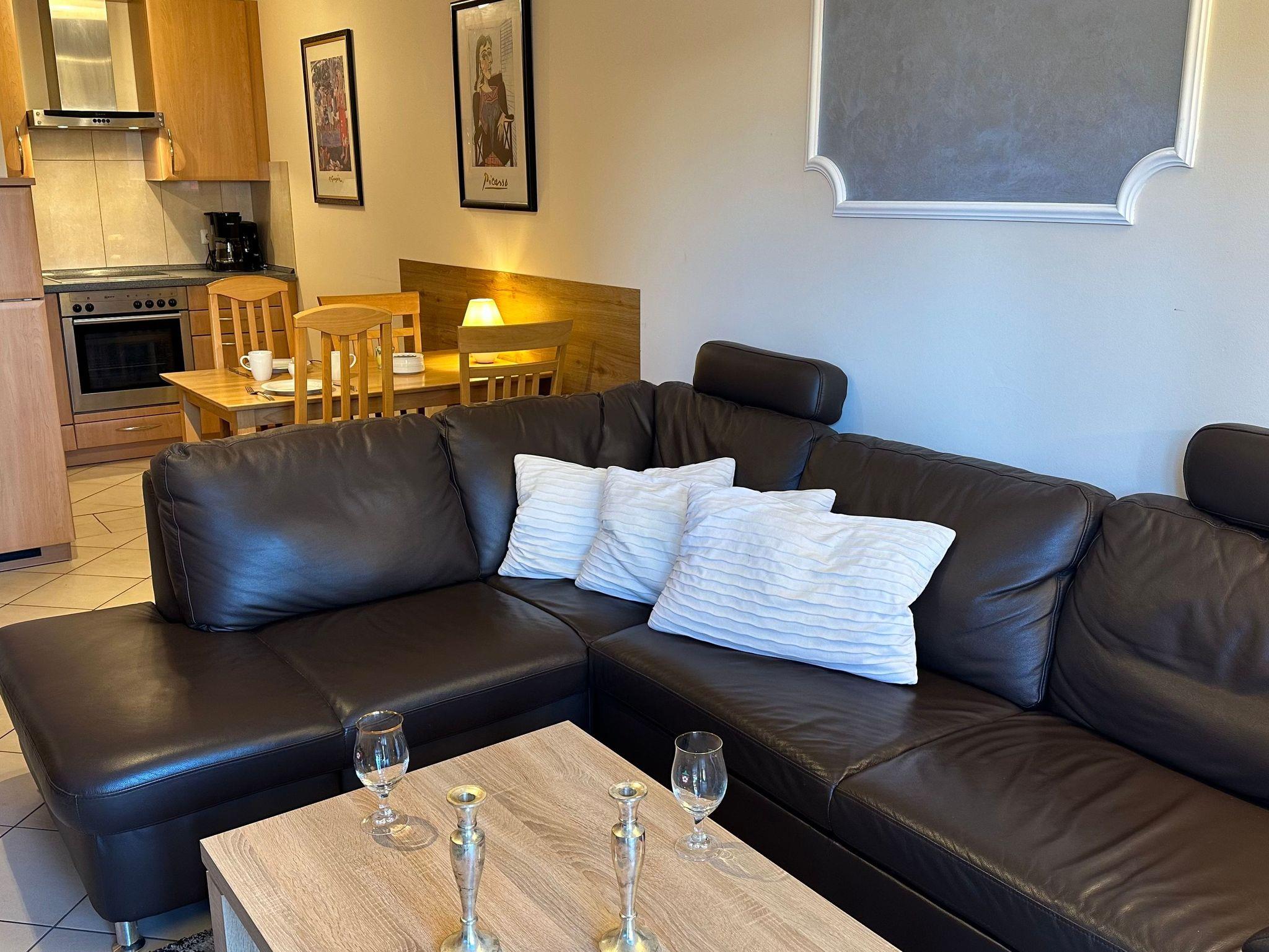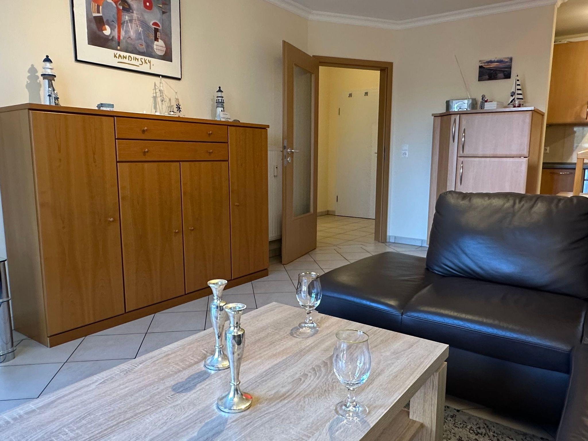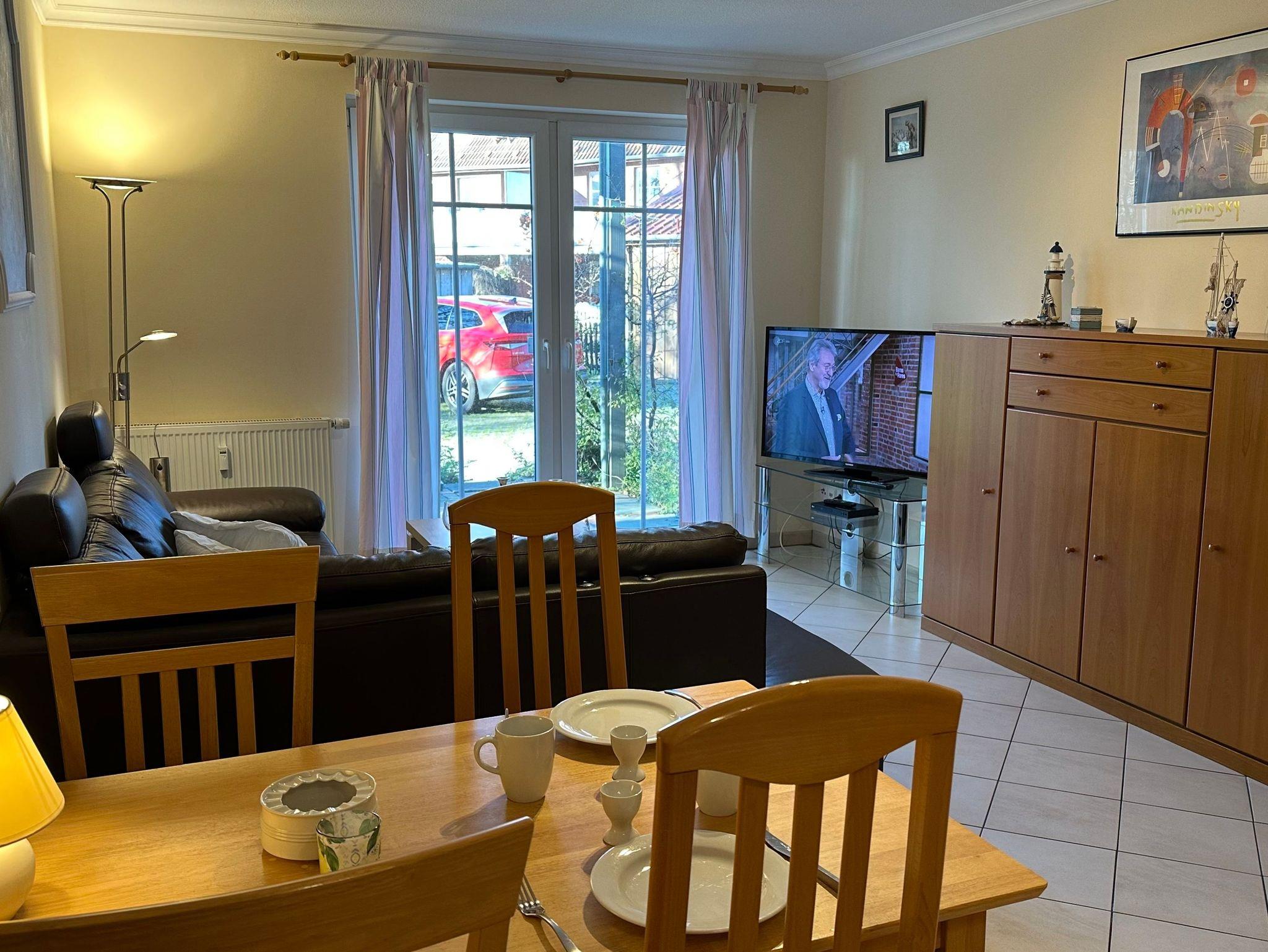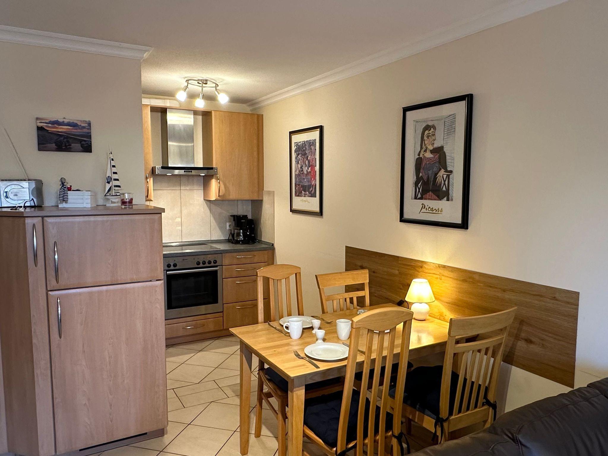 Sehr gemütlich eingerichtete Ferienwohnung mit Westterrasse, Parkplatz am Haus.Die Wohnung hat ein Wohnzimmer mit Einbauküche,Spülmaschine, Microwelle, ein Schlafzimmer, ein Bad mit Dusche. Es ist ein Fernseher vorhanden.