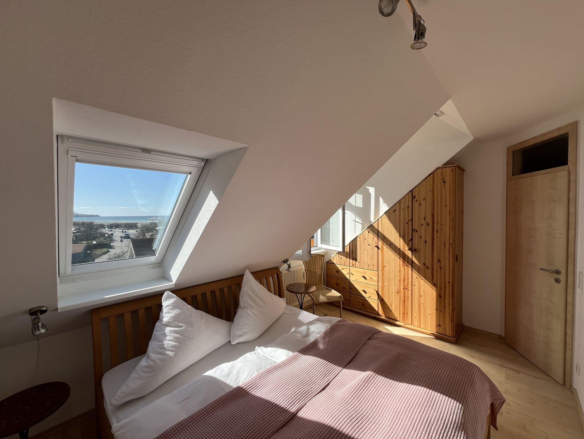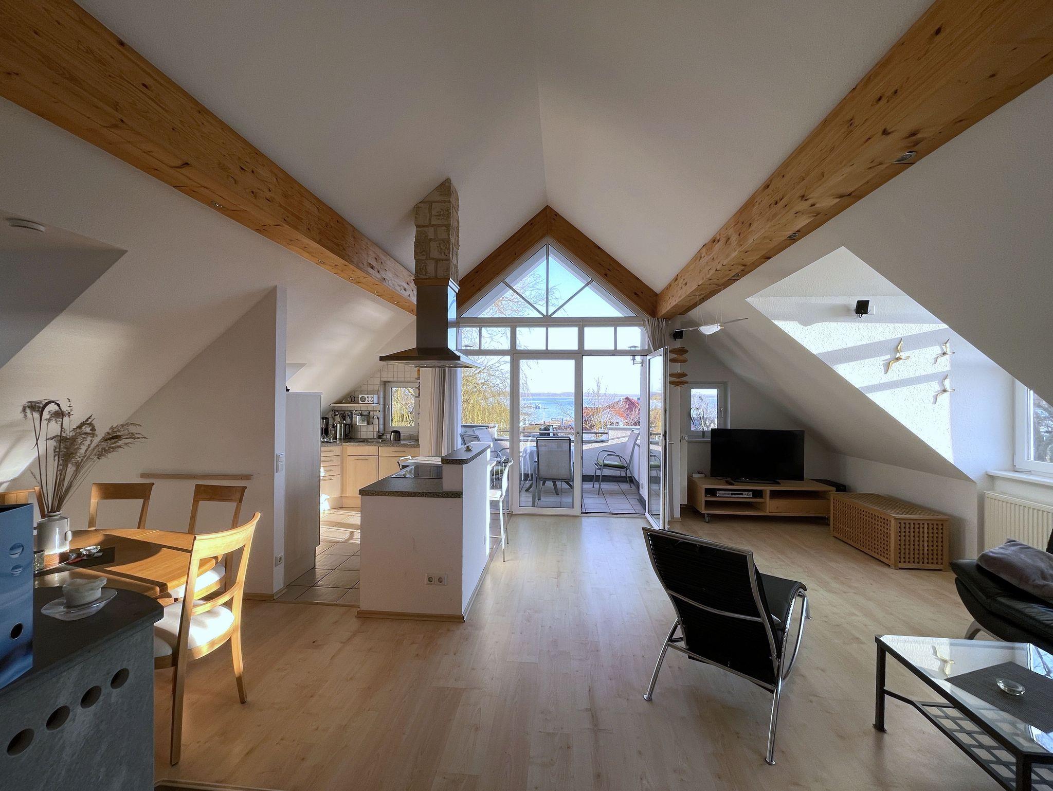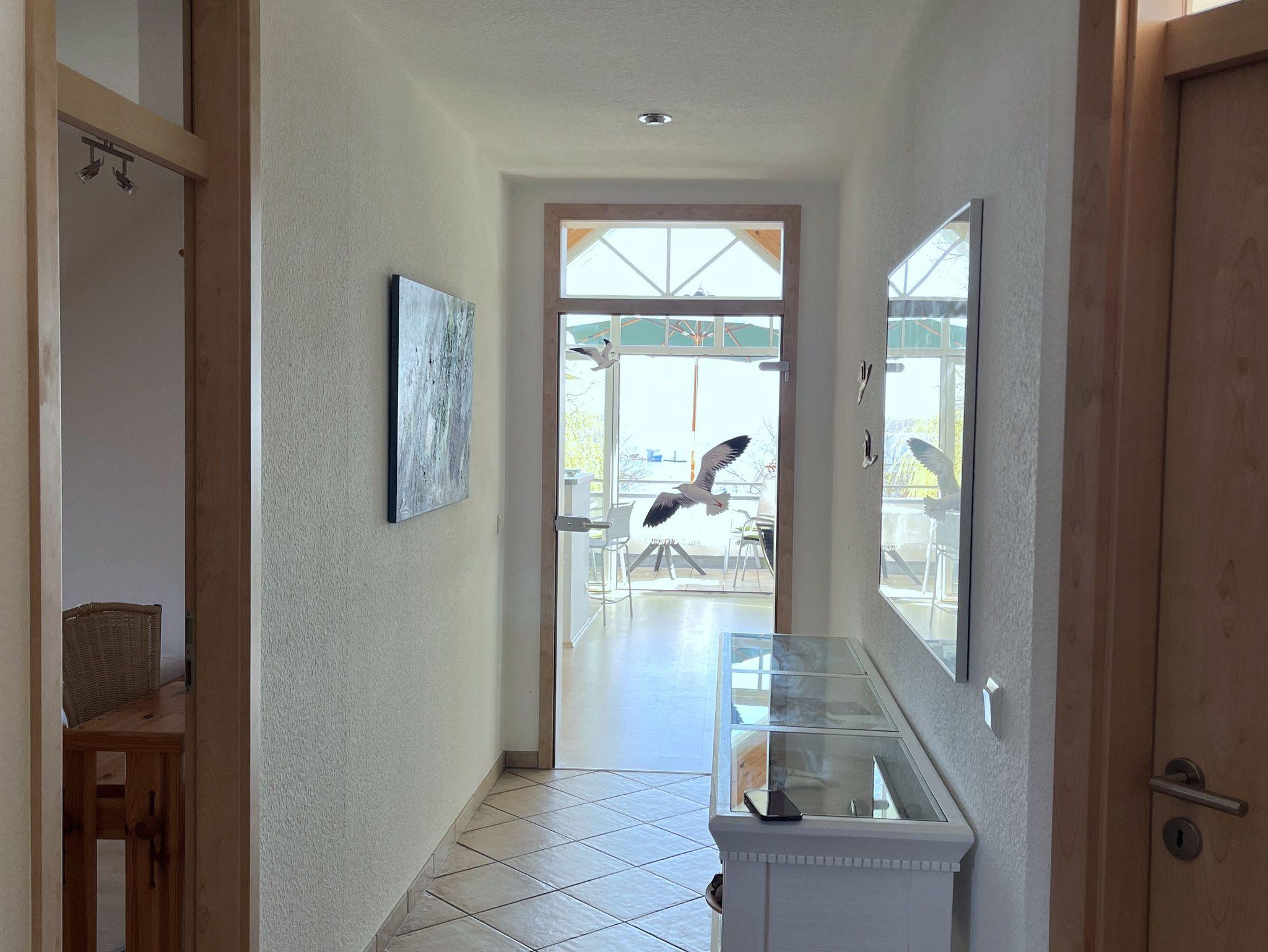 Wenn Sie in diese schöne Wohnung eintreten, fällt der erste Blick direkt auf das Salzhaff - was könnte es Schöneres geben? Und das ist nicht der einzige wunderschöne Ausblick, den Sie aus dieser Wohnung haben: im Wohn- und Schlafraum haben Sie außerdem freie Sicht auf die Ostsee und den Kirchturm von Rerik.