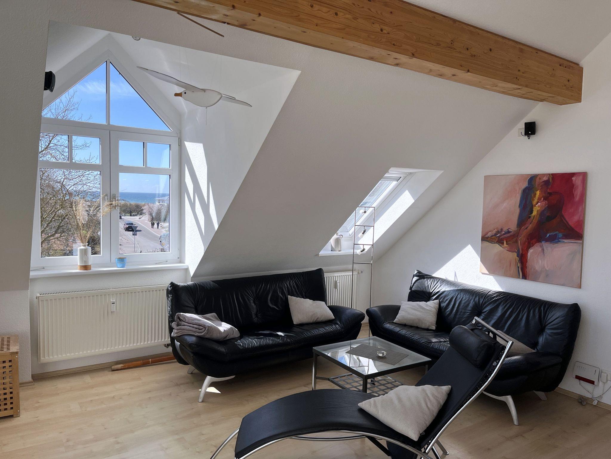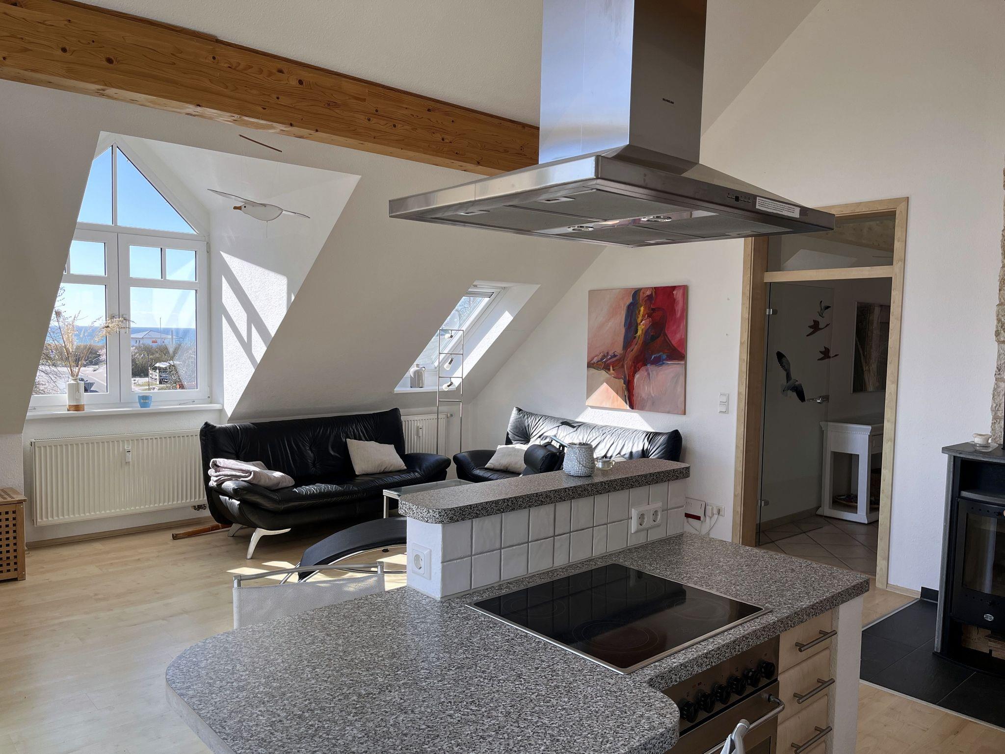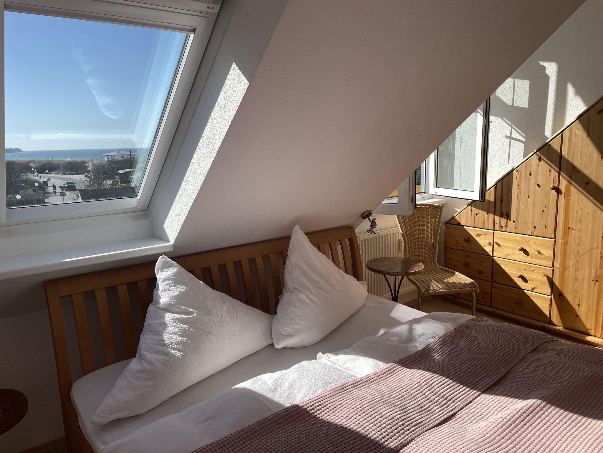Wenn Sie in diese schöne Wohnung eintreten, fällt der erste Blick direkt auf das Salzhaff - was könnte es Schöneres geben? Und das ist nicht der einzige wunderschöne Ausblick, den Sie aus dieser Wohnung haben: im Wohn- und Schlafraum haben Sie außerdem freie Sicht auf die Ostsee und den Kirchturm von Rerik.