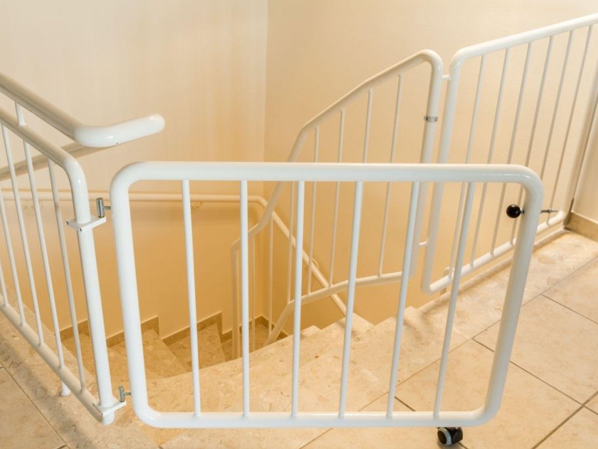 Gitter zum Absichern des Treppenabgangs für Kleinkinder.