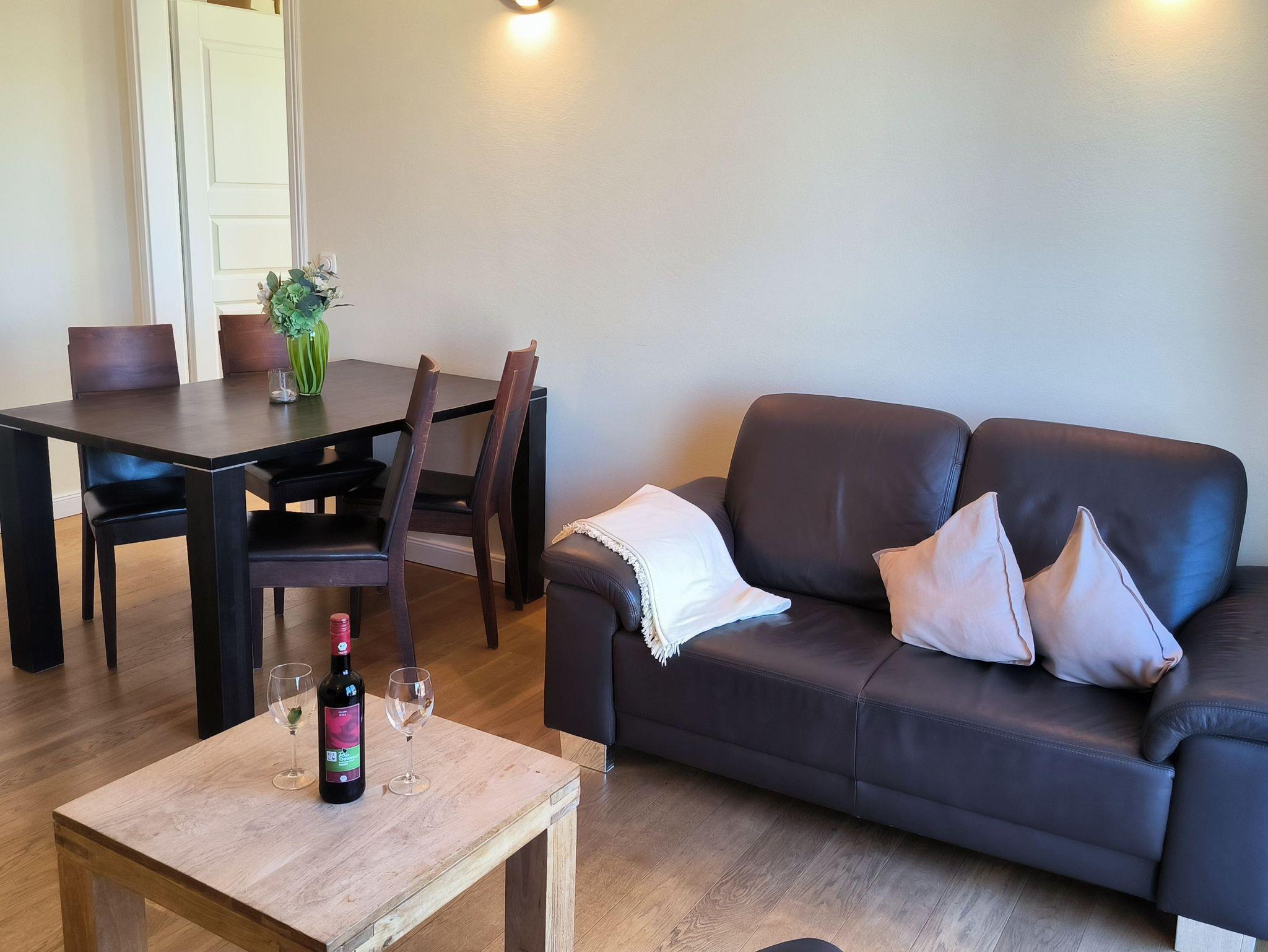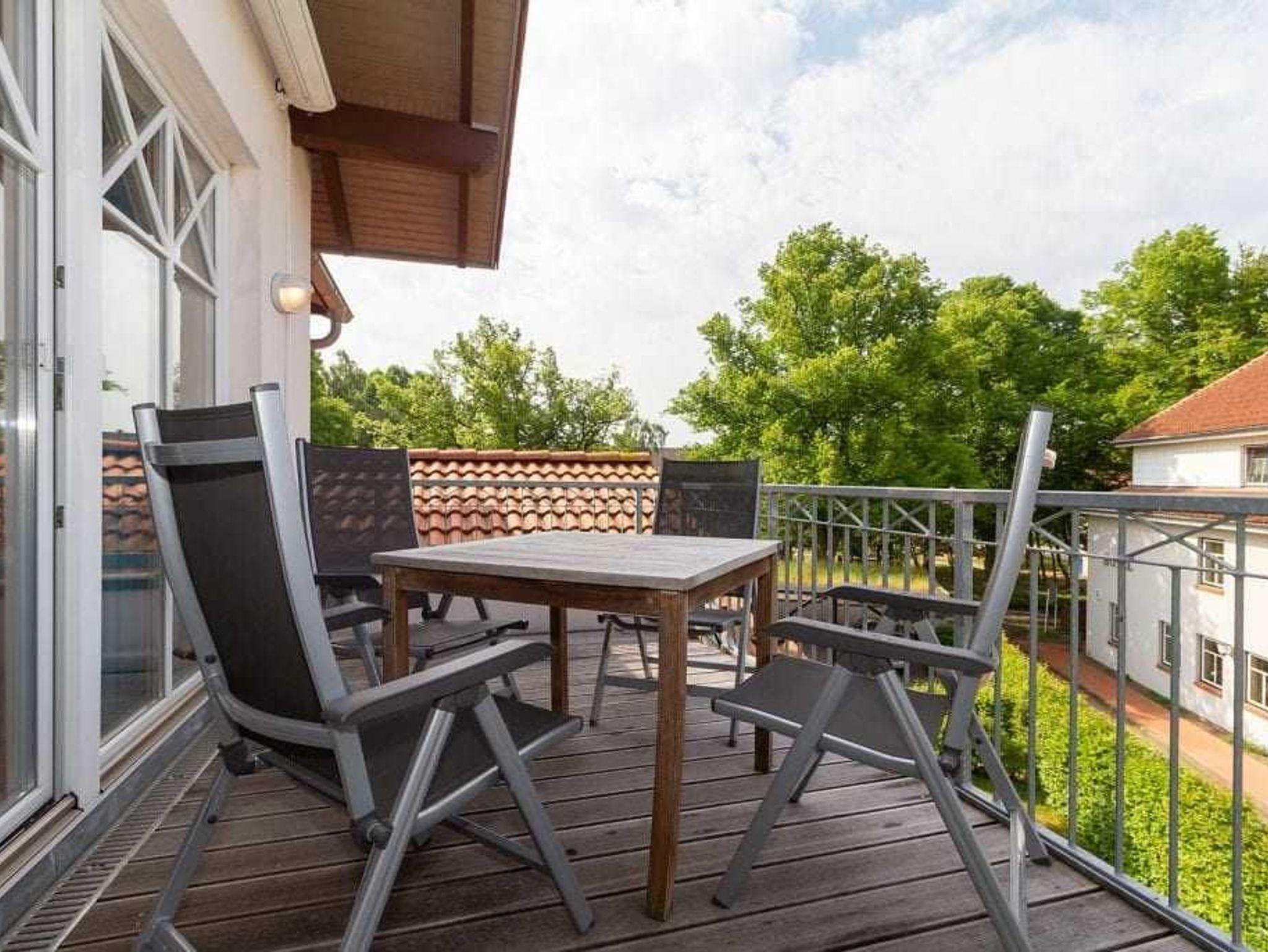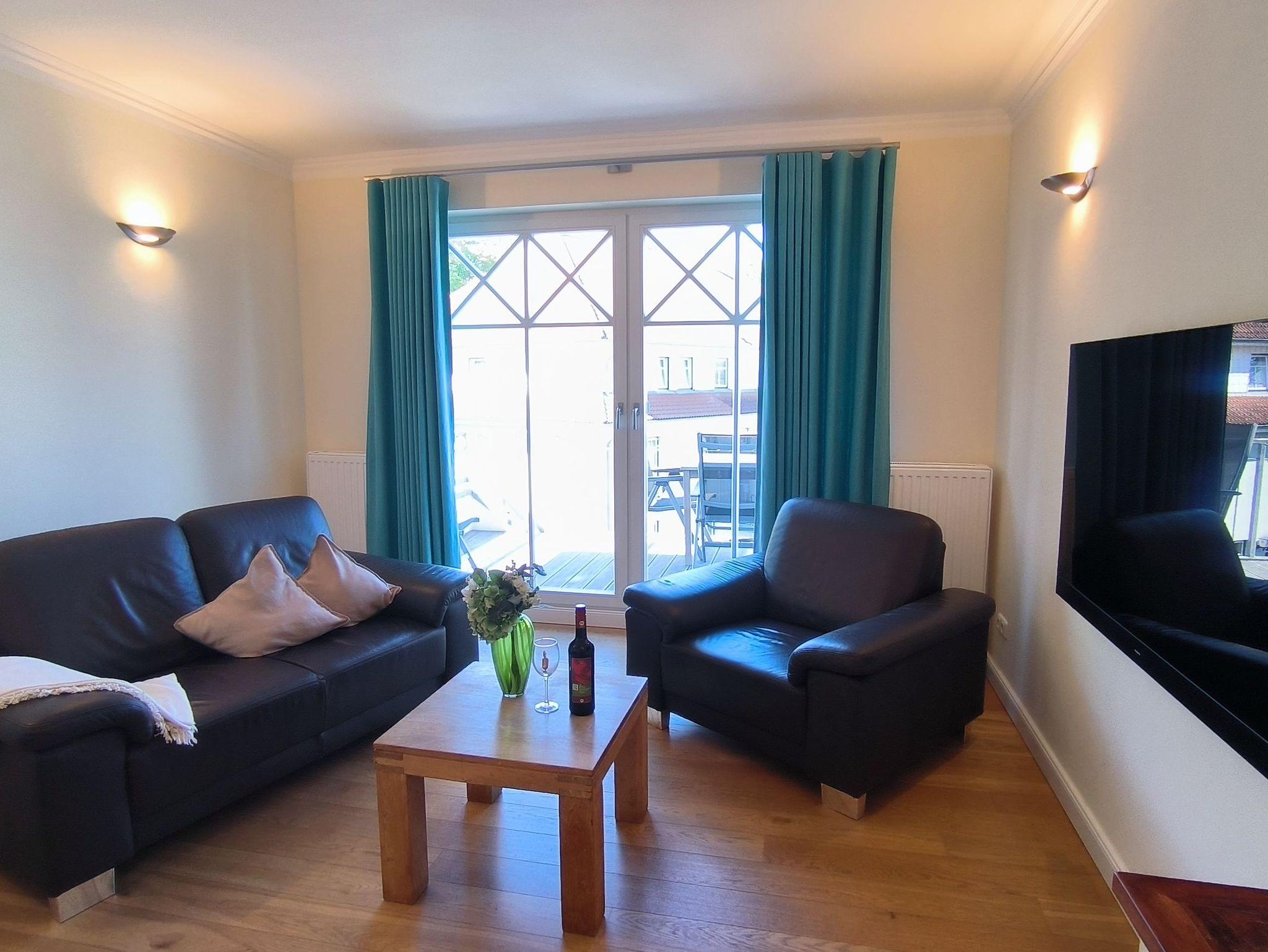 Moderne Ferienwohnung in Rerik mit zwei Balkonen, hochwertigem Dielenboden und Espresso-Maschine für erholsame Tage.
