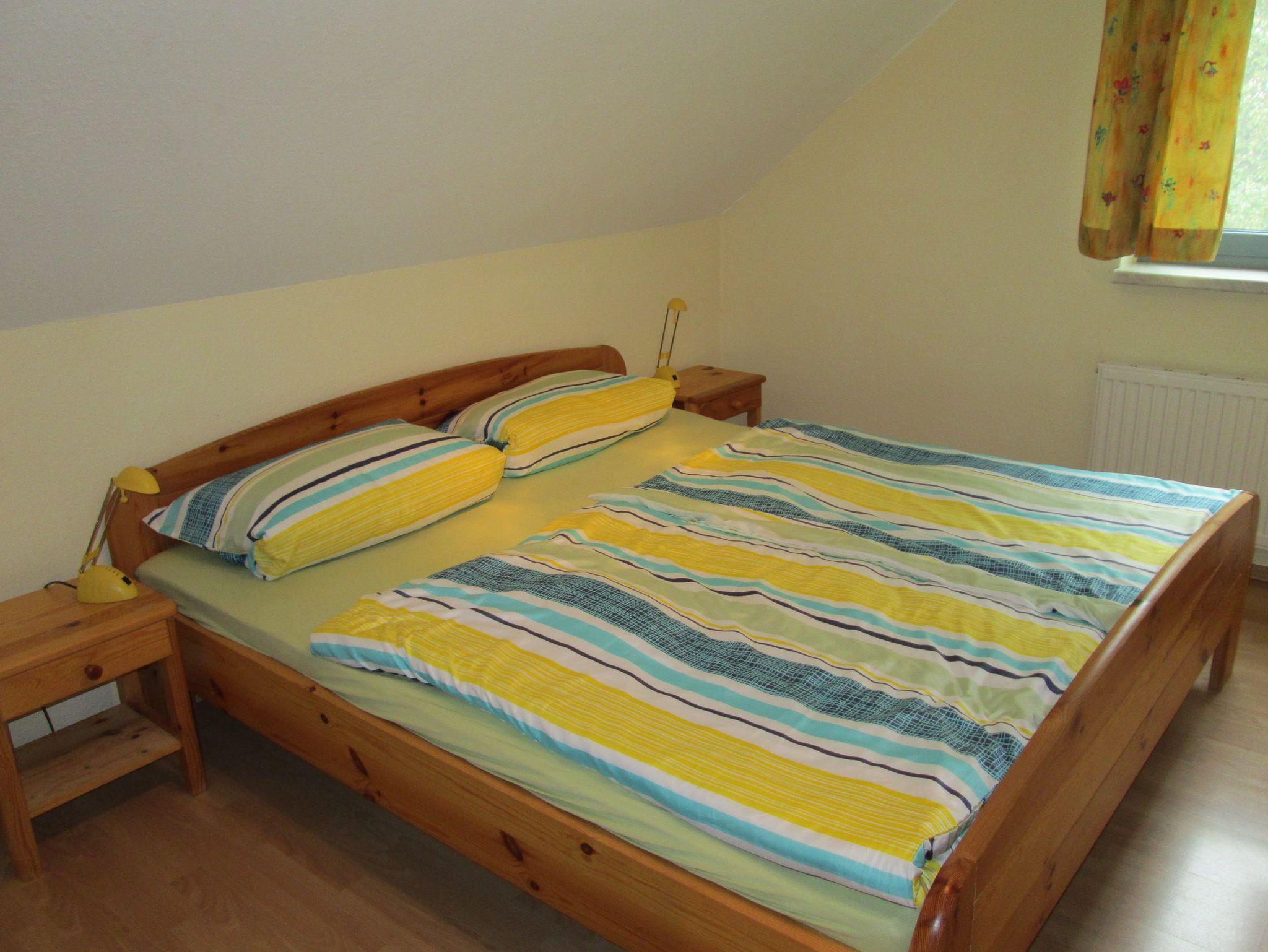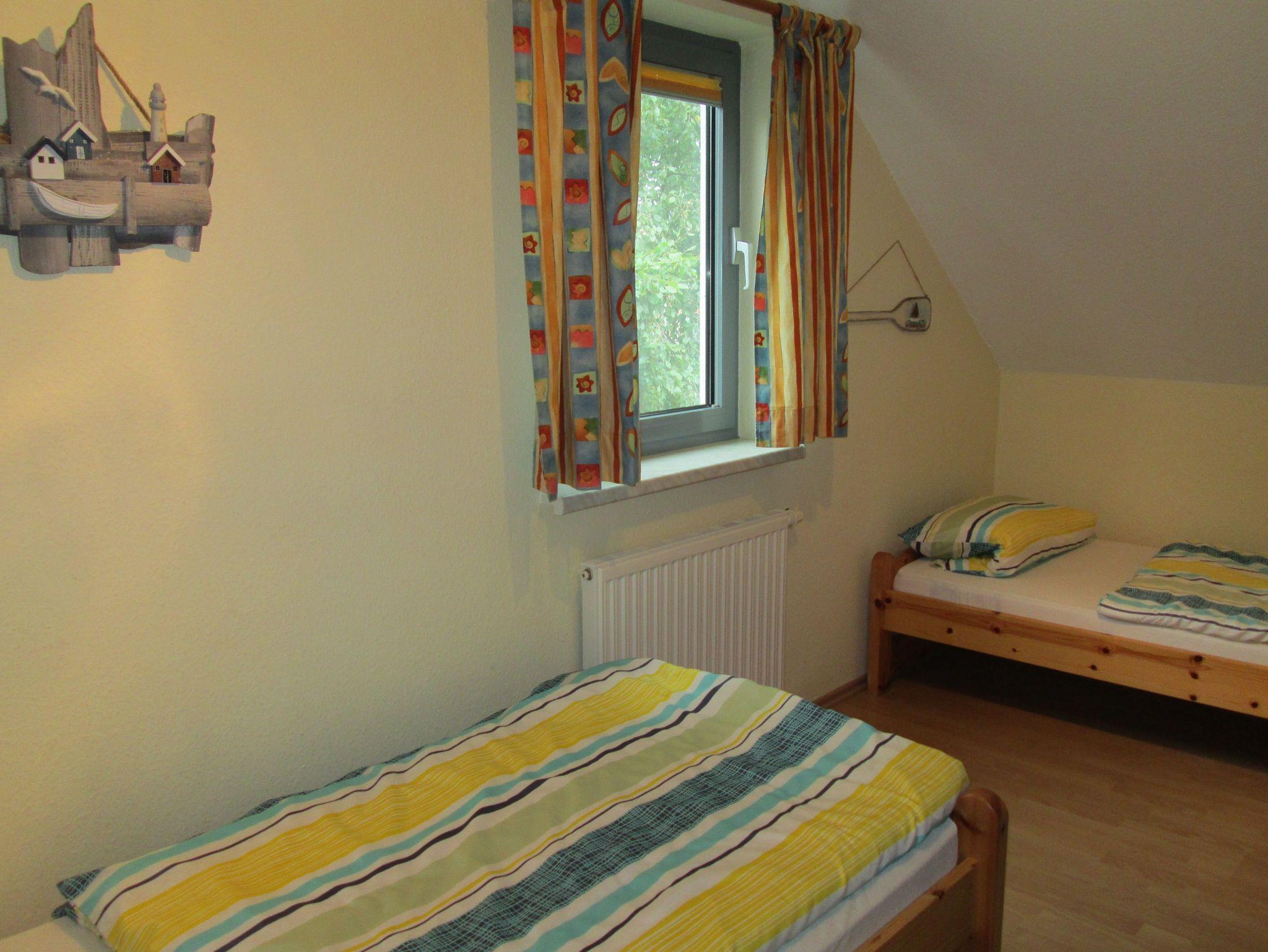 Das Obergeschoss verfügt über zwei separate Schlafzimmer (1 x Doppelbett sowie 2 Einzelbetten)