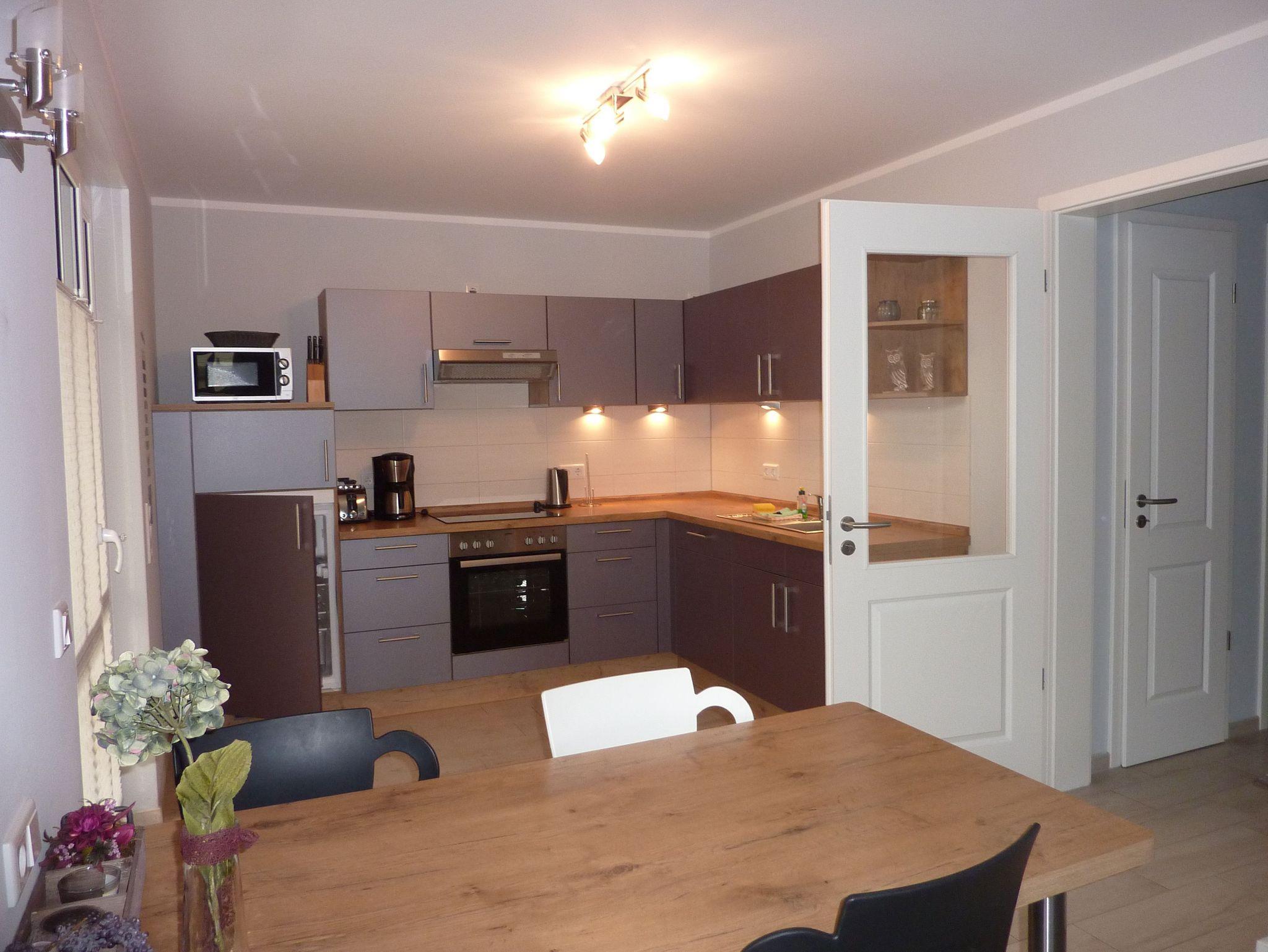 Die Küche ist komplett ausgestattet und verfügt über sämtliche Kleingeräte. Im Kühlschrank finden Sie eine Gefriermöglichkeit. Und einen Backofen haben Sie auch.