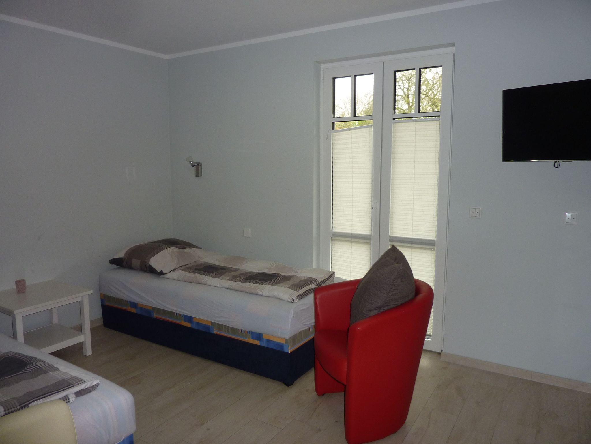 Unsere Ferienwohnung befindet sich im Edgeschoss. Sie verfügt über 2 separate Schlafzimmer. Ein Schlafzimmer mit Doppelbett und das zweite Schlafzimmer mit zwei Einzelbetten normaler Größe und verstellbarer Lattenroste. Als Verdunklungsmöglichkeiten dienen Ihnen Plissees und Außenrolläden. Das Kinderschlafzimmer verfügt über einen Fernseher. Das Elternschlafzimmer nicht.