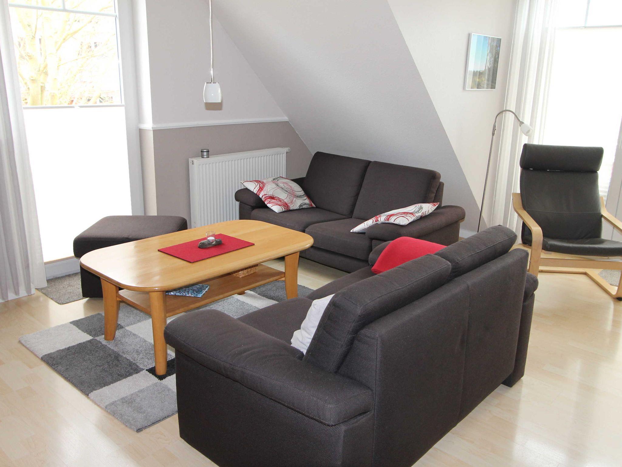 Die Wohnung verfügt über einen großen hellen Wohnraum mit Couchecke, Sat-TV, WLAN und Hifi- Anlage.