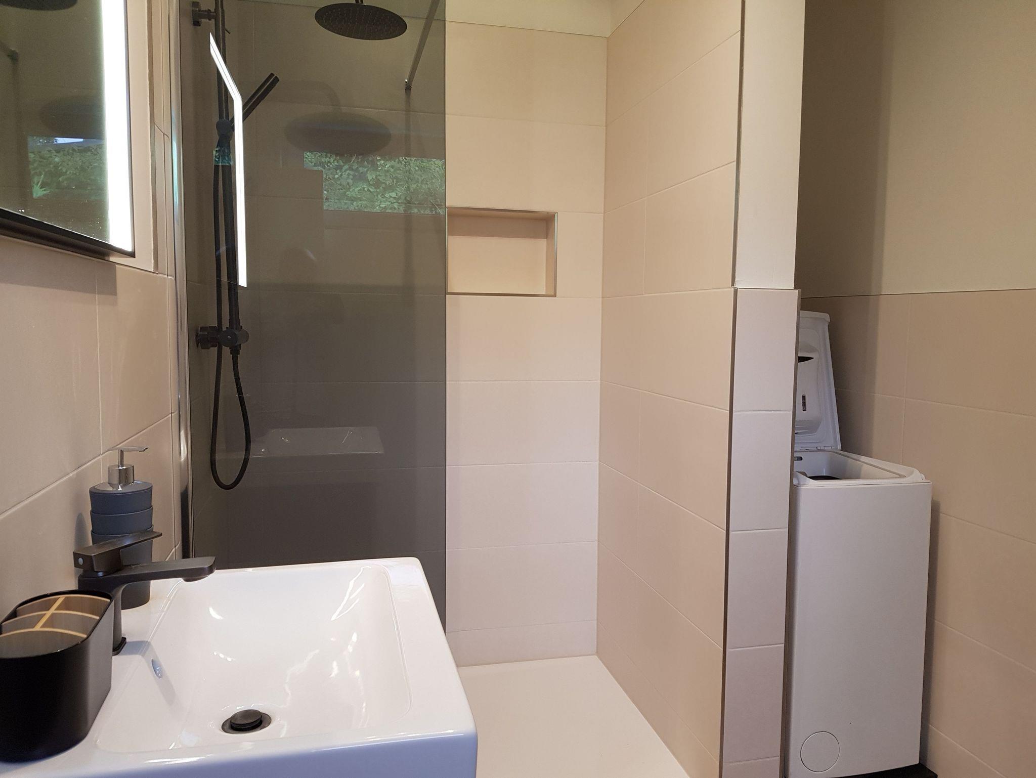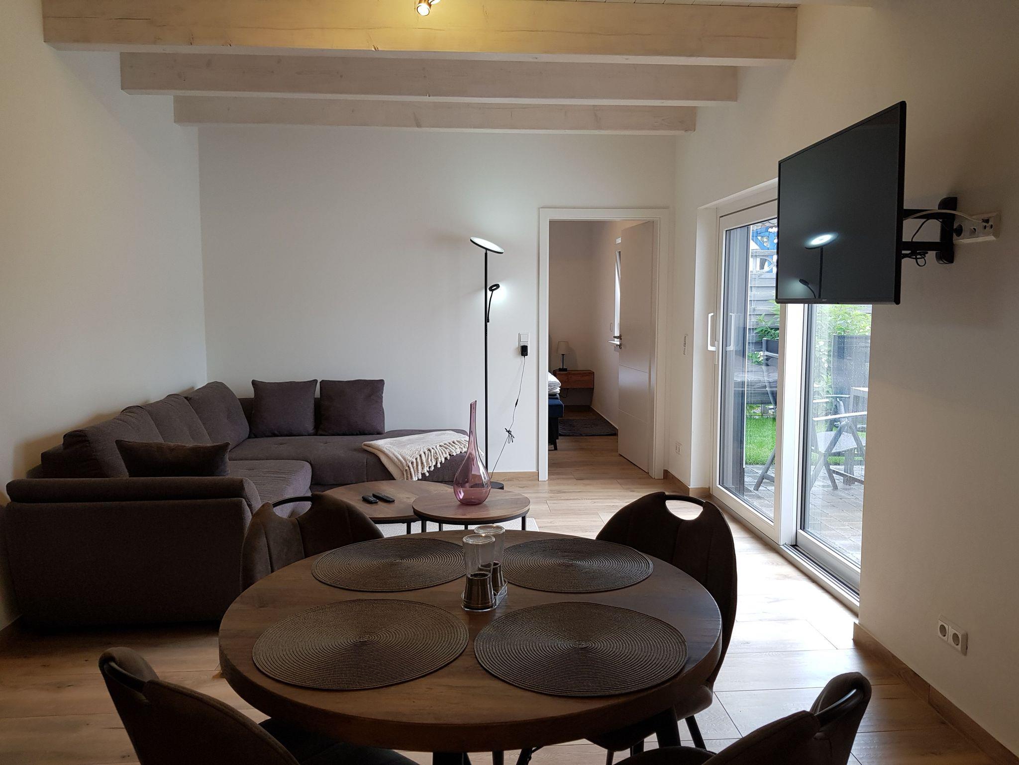 Unser modern gestaltetes Ferienhaus verfügt über 2 Schlafzimmer mit Doppelbett, ein gemütliches Wohnzimmer mit integrierter Küchenzeile, ein Badezimmer mit Dusche und WC und eine gemütliche Terrasse. In Kürze wird die Garage nutzbar sein. Ein Stellplatz befindet sich auf dem eingezäunten Grundstück.