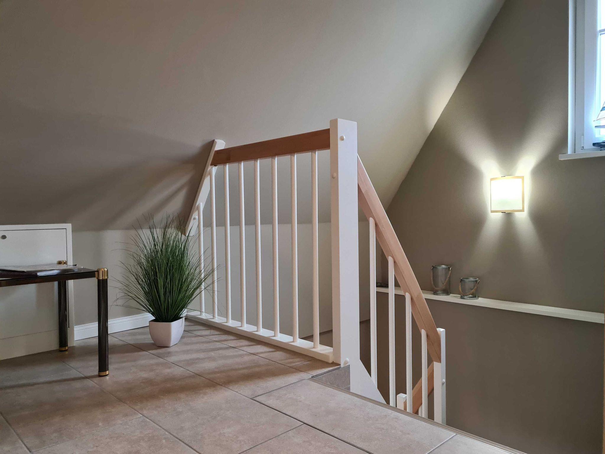 Obergeschoss: 2 weitere Schlafzimmer, 1 Duschbad / WC, Sauna.