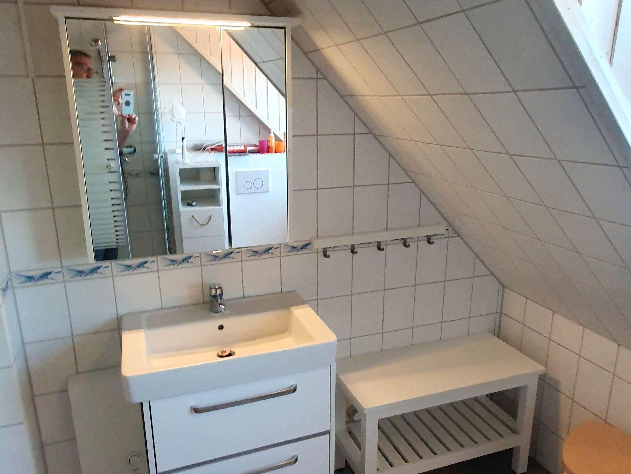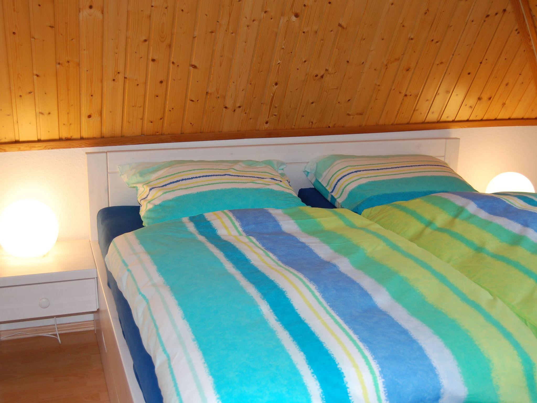 Unser, über die im Wohnzimmer befindliche Wendeltreppe erreichbares, Piratennest bietet Platz für 3 Personen in Einzelbetten - ob Groß oder Klein. Das untere Schlafzimmer verfügt über ein komfortables Doppelbett mit höhenverstellbaren Kopf- und Fussteilen in den Lattenrosten.