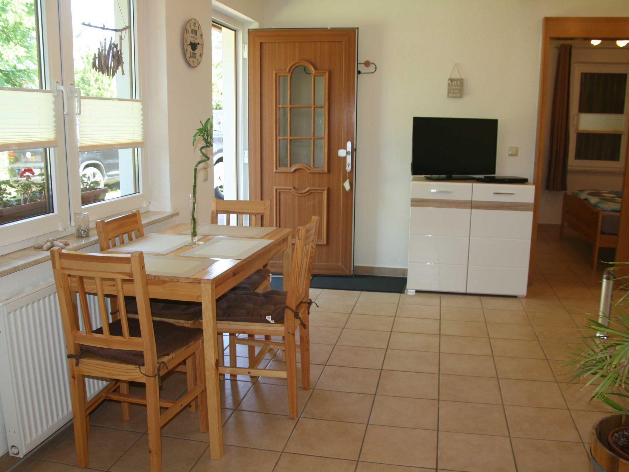 2-Raum-Gartenbungalow für 2-4 Personen, ebenerdig, rollstuhlgeeignet, Nichtraucher, Fußbodenheizung. Auf dem Grundstück des Wohnhauses der Gastgeberfamilie. Urlaub für Gäste mit Handicap: Bungalow komplett ebenerdig, schwellenlos, mit breiter Eingangstür und Schiebetüren innen. Stufenloser barrierefreier Zugang vom Parkplatz zum Bungalow mit Terrasse.
