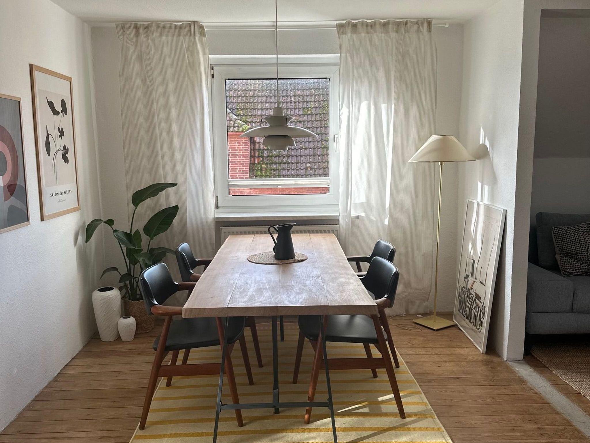 Im Wohn- und Esszimmer befindet sich ein Esstisch mit bis zu 5 Sitzplätzen.