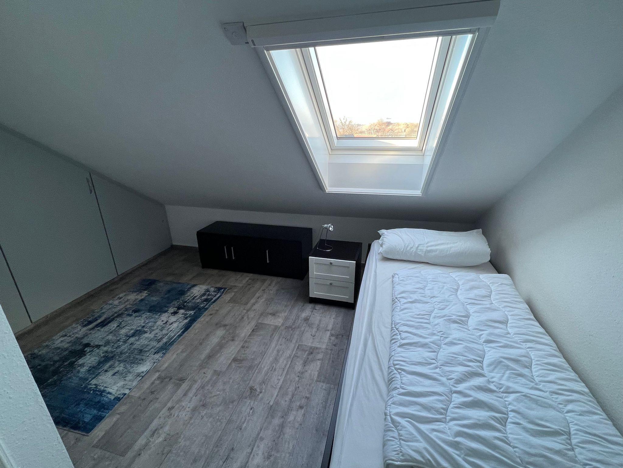 Unser Appartement befindet sich in der 2. Etage und geht über 2 Ebenen. Auf der ersten Ebene finden Sie den großzügigen Wohn- und Eßbereich mit Küchenzeile, gemütlicher Couchecke, Elternschlafzimmer und Badezimmer. Ein Balkon schließt an. Weiterhin verfügt die Wohnung über ein zweites Schlafzimmer im Dachgeschoss. Sie gelangen über eine kleine Treppe nach oben. Unsere Küchenzeile ist komplett ausgestattet mit allem was man benötigt. Ein Minibackofen ist vorhanden. Das Badezimmer hält Dusche und WC für Sie bereit. Die Dusche ist flach und ebenerdig. Alle Dachfenster sind mit Außenrolladen (elektrisch betrieben ) und Insektenschutz versehen.