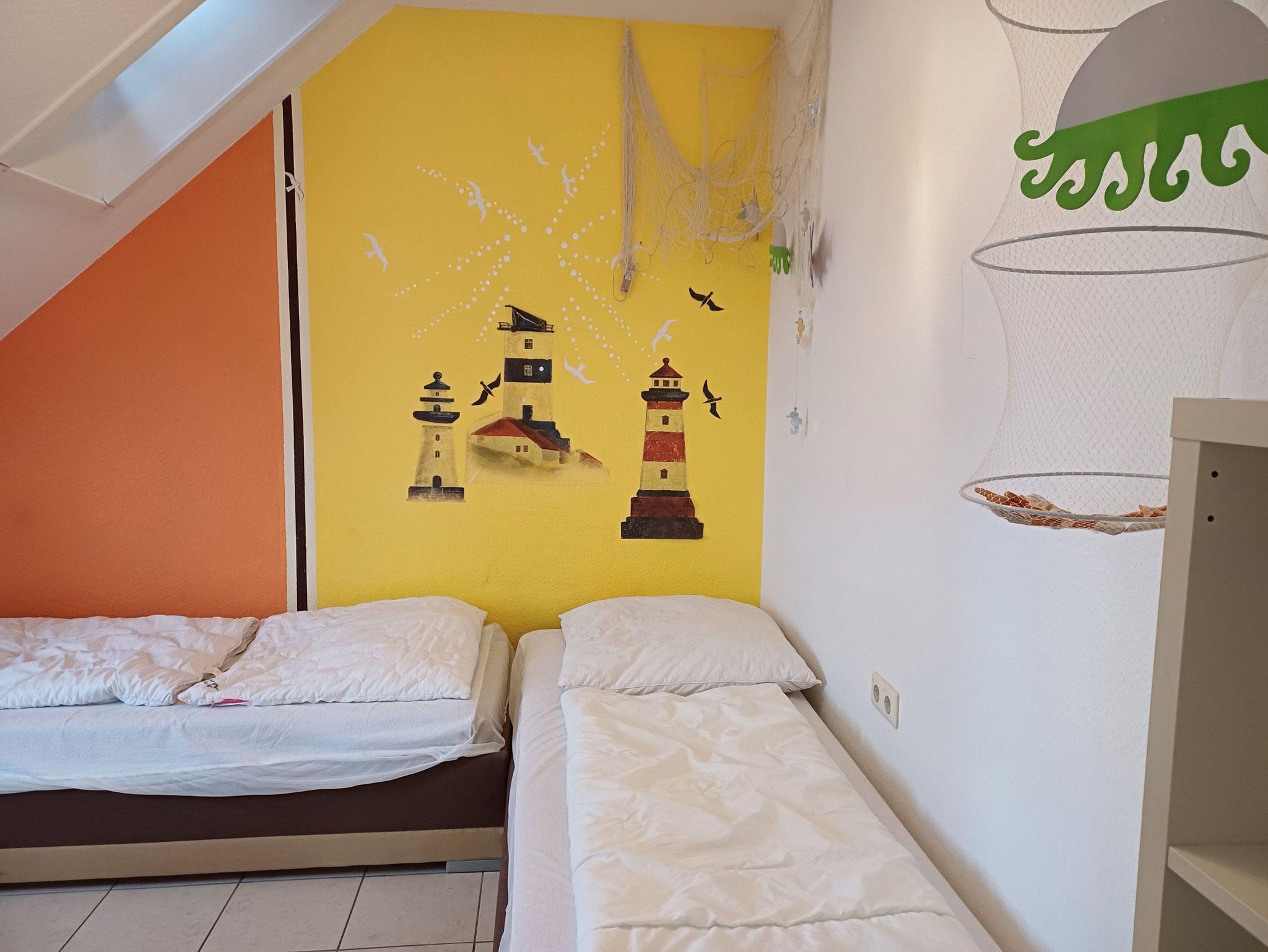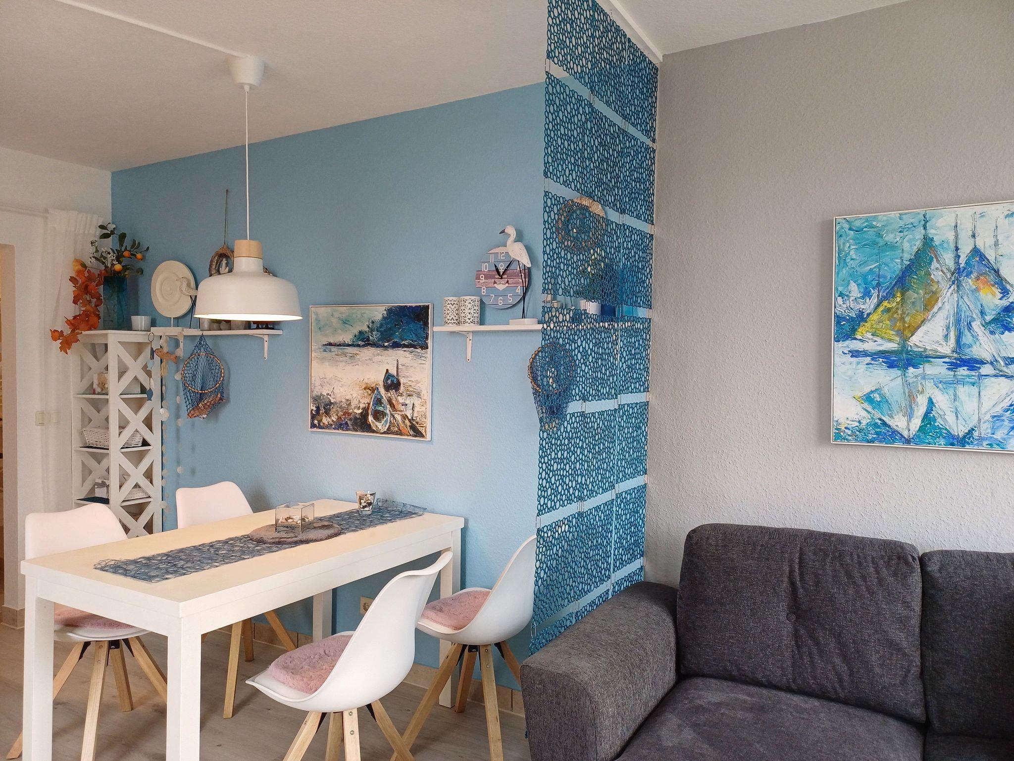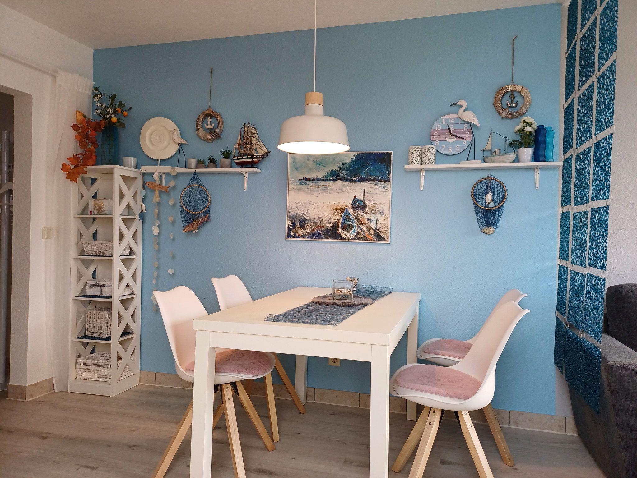 Attraktive und helle NR-Maisonettewohnung m. Blick auf Meer u. Haff aus jedem Zimmer. In der 1. Etage befinden sich Wohraum m. Küchenzeile u. Bad. Die Schlafräume ( 1 x Doppelbett, 1 x 2 Einzelbetten) sind in d. 2. Etage. Morgensonne auf d. Balkon, Abendsonne auf d. Terrasse. Wäschepaket mietbar - 20.00 E/Pers.