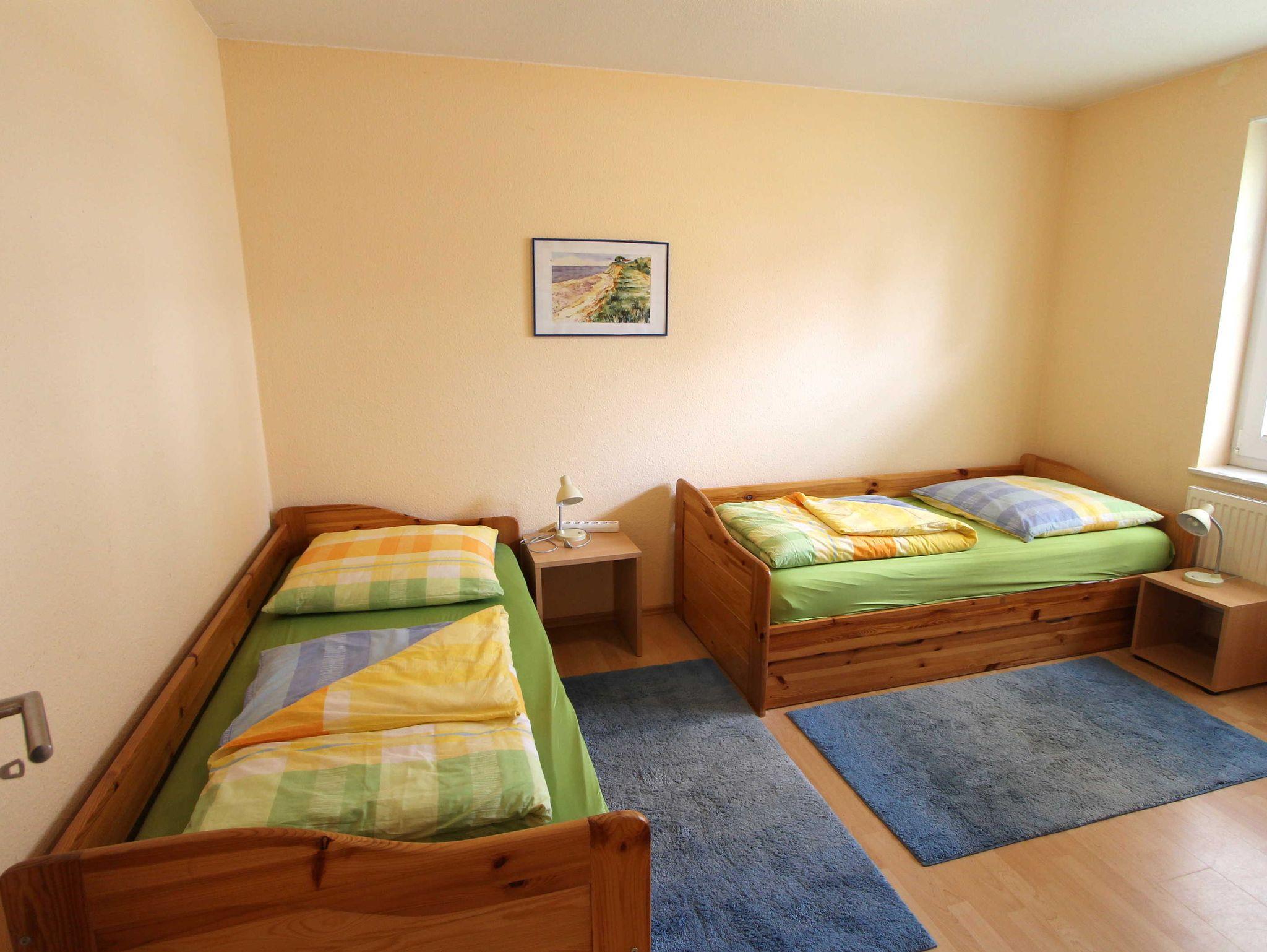 In einem Schlafzimmer befindet sich ein Doppelbett, im zweiten Schlafzimmer zwei Einzelbetten, eines mit integriertem Ausziehbett.